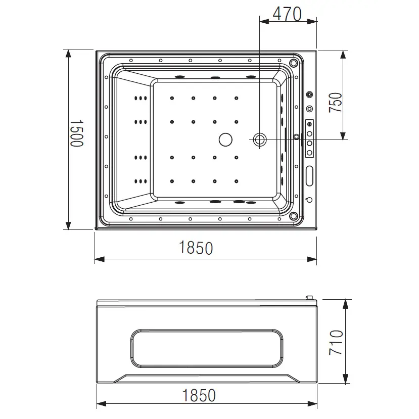 • Уникальный канал по периметру ванны, который заполняется водой, также ванна может быть заполнена до самого борта, вода сливается через этот канал!
