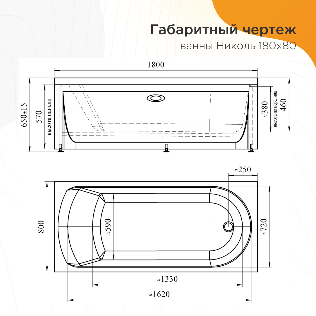 Акриловая ванна "Николь" - одноместная прямоугольная модель с широким дном. Обладает хорошей вместимостью, благодаря увеличенной глубине и совершенно ровным, гладким стенкам.