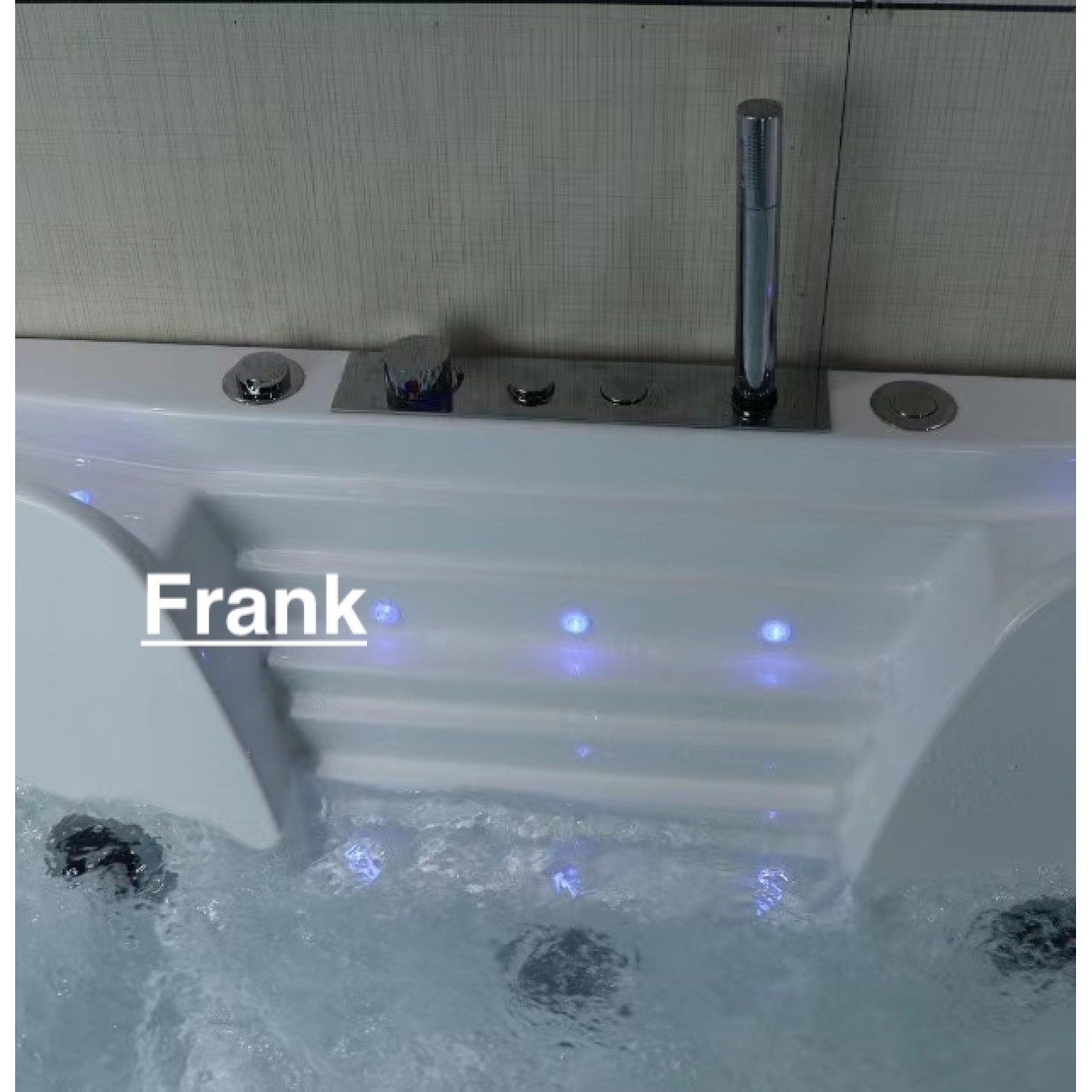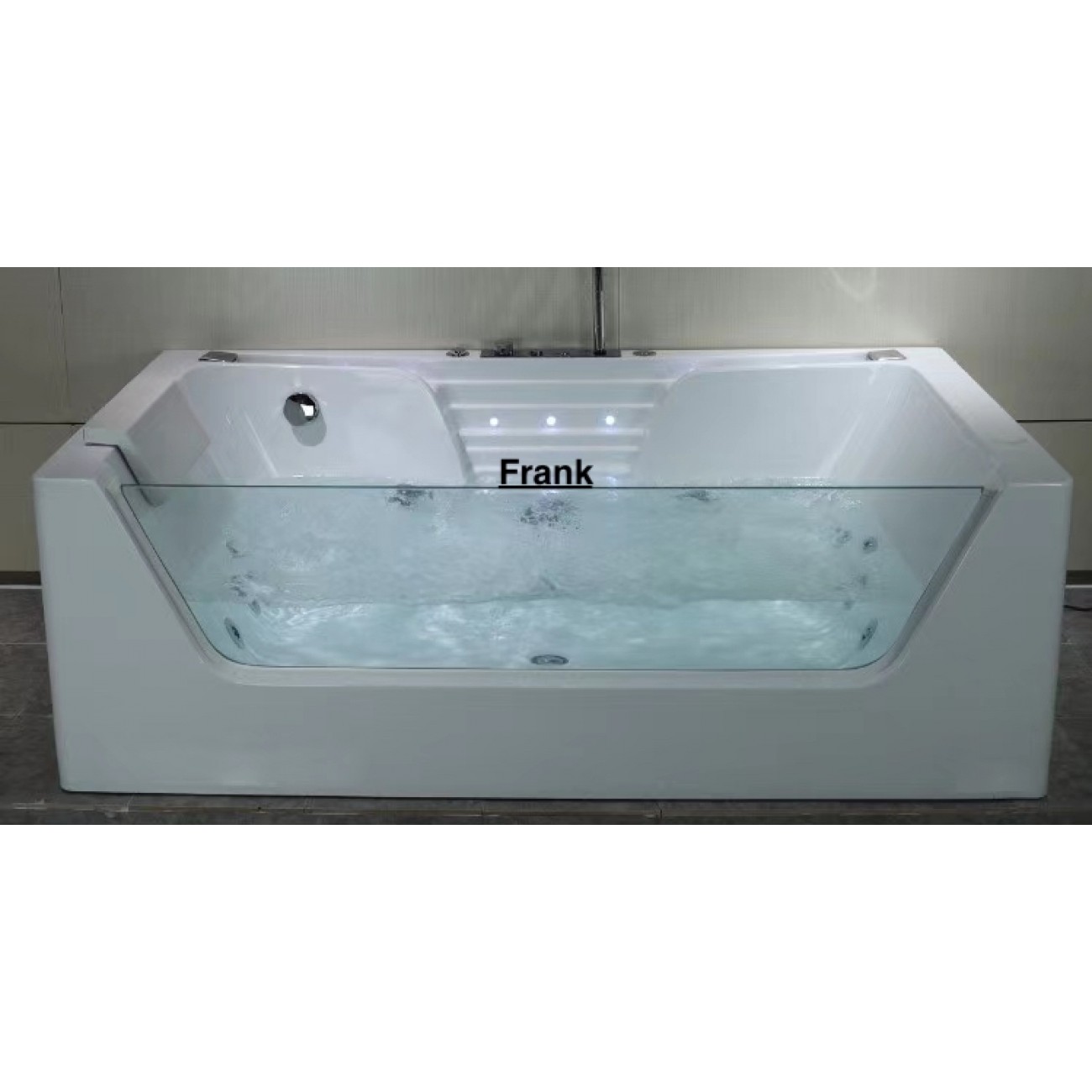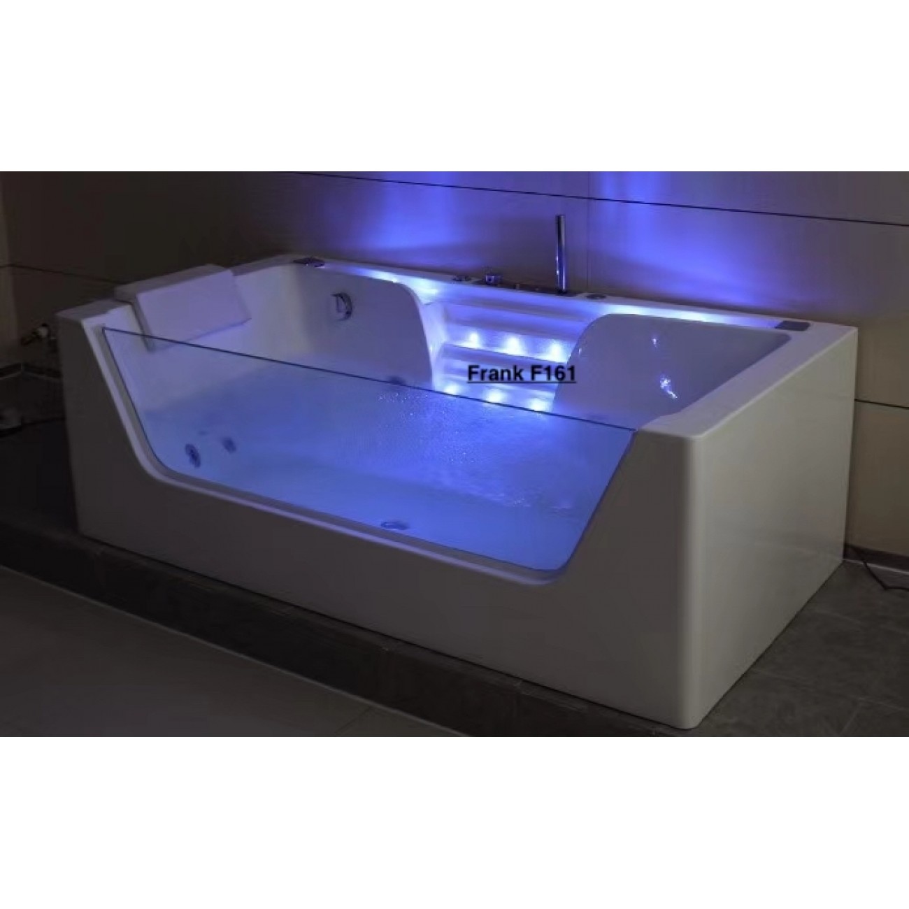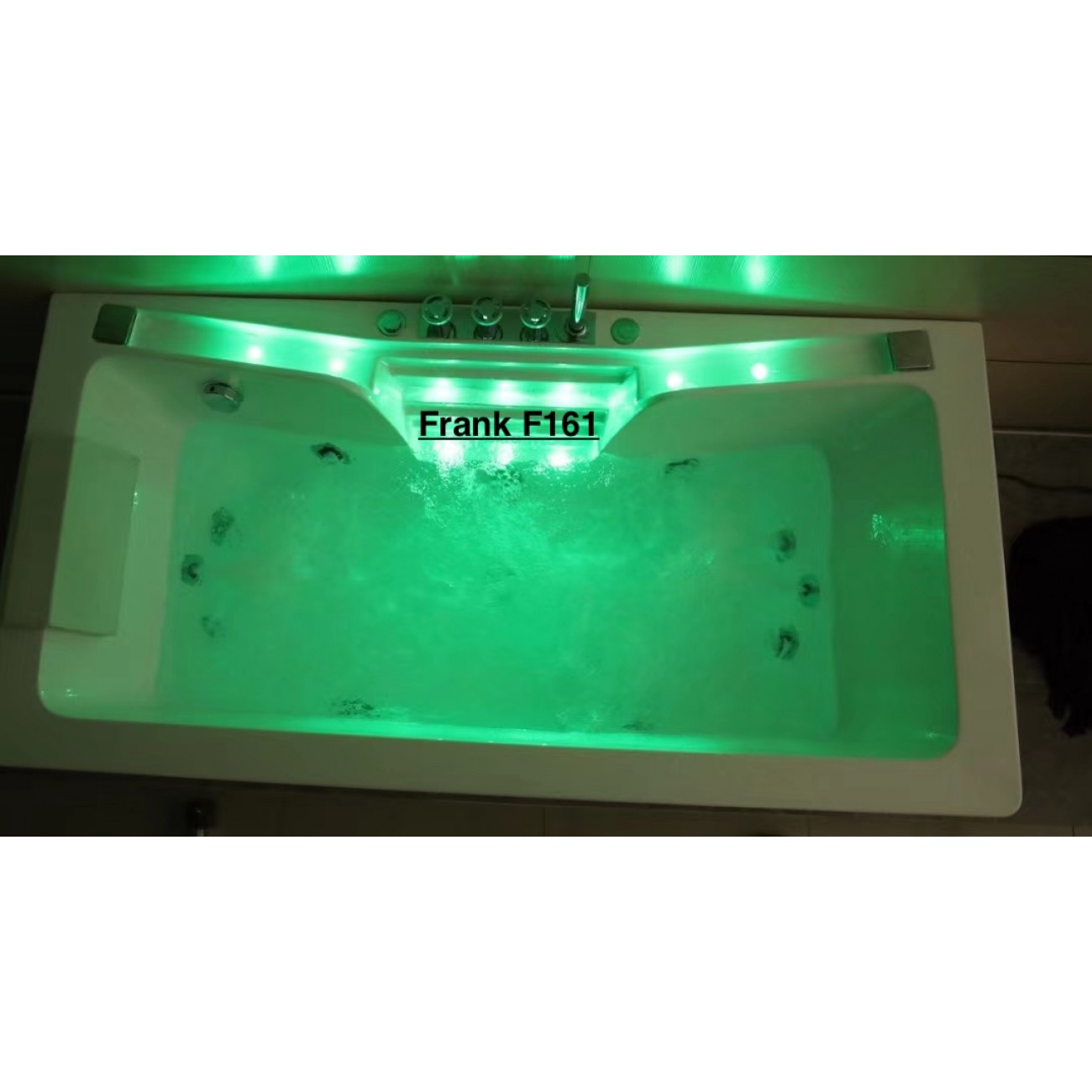 Все гидромассажные ванны Frank поставляются в максимальной комплектации и имеют множества функций. Ванна с гидромассажем Frank F161 пристенная, прямоугольная с аэромассажем,гидромассажем,турбомассажем. Также ванна снабжена системой дезинфекции. Форсунки расположены в ванне с учётом эргономики тела и способствуют максимальному охвату поверхности тела при работе аэро- и гидромассажных двигателей. Вся ванна сделана из литьевого акрила. Передний и боковые экраны сделаны единой конструкцией с ванной. Стоит система слива остатков воды из форсунков. Лицевая стенка изготовлена из 10мм закалённого стекла. Ванна имеет 2 каскадных налива воды с точечной подсветкой 5 цветов.