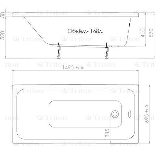 Модель несовместима с установкой гидро-/аэромассажей, дополнительного оборудования. По желанию она может быть укомплектована стандартными ножками или усиленным каркасом. Популярный размер, привычный внешний вид с гладкими стенками и невысокая цена делают ванну Тритон Ультра идеальным решением для замены старой чугунной или железной ванны на новую.