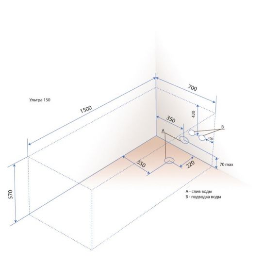 Для облегчения монтажа ванны в ограниченном пространстве ванной комнаты и в соответствии с ТУ, размеры изделия могут отличаться, по габаритной длине: -1%+0,2%, по габаритной ширине: -2%+0,2%