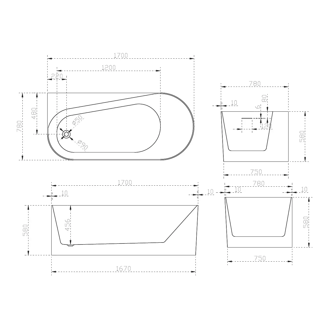 В комплекте: акриловая ванна, слив-перелив, стальной каркас, белый слив