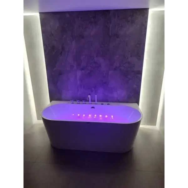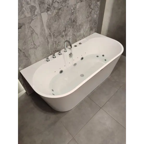 Форсунки расположены в ванне с учётом максимального массажа спины и поясницы и способствуют максимальному охвату поверхности тела при работе гидромассажного двигателя. Вся ванна сделана из литьевого акрила. Передний и боковые экраны бесшовные с ванной. Стоит система слива остатков воды из форсунков.