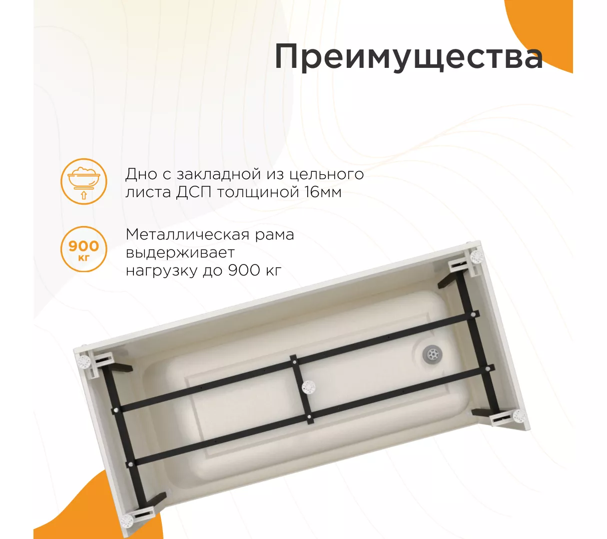 Основная цена указана за ванну, установленную на каркас с ножками, фронтальная панель