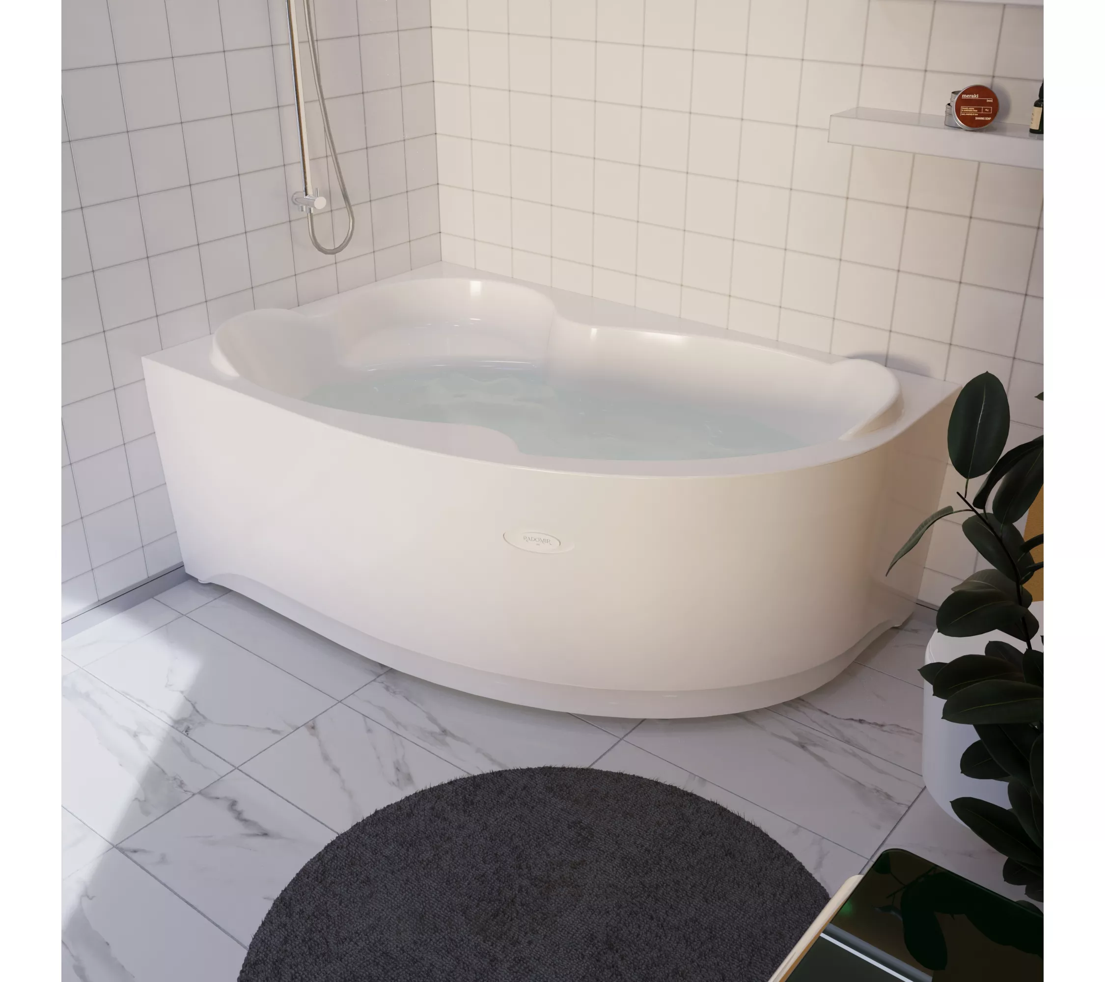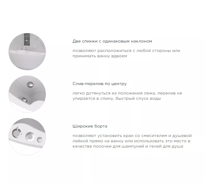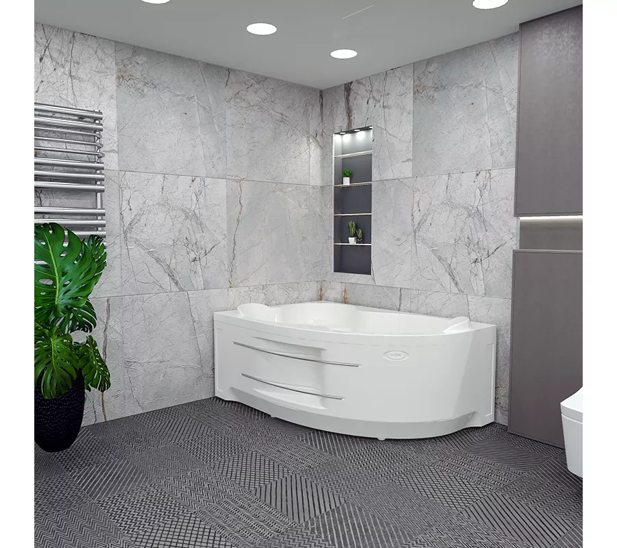 Асимметричная ванна с сиденьем Ирма – выбор для всех, кто привык окружать себя удобством и комфортом. Одинаково подходит семейным парам и любителям романтиков с пеной, а также семьям с детьми, которые обожают плескаться в просторной ванне. А угловая ванна с гидромассажем станет спасением для тех, кто много работает и чья жизнь связана с физическими и эмоциональными нагрузками.