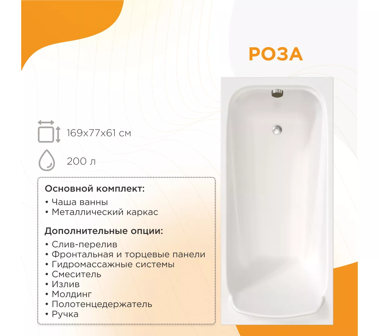 Акриловая ванна "Роза" 169х77 - популярная прямоугольная модель для стандартных и малогабаритных ванных комнат. Чаша длиной 169 см компактно встает вдоль стены и не занимает много места, что позволяет наиболее оптимально использовать имеющееся пространство. Это самая первая модель ванны производства компании "Радомир", которая не теряет своей актуальности уже более 30 лет! Главные преимущества "Розы", которые принесли ей узнаваемость и многолетний успех: высокое изголовье, выступы для рук внутри чаши и увеличенная ширина ванны, что дает больше комфорта при стандартной занимаемой площади.