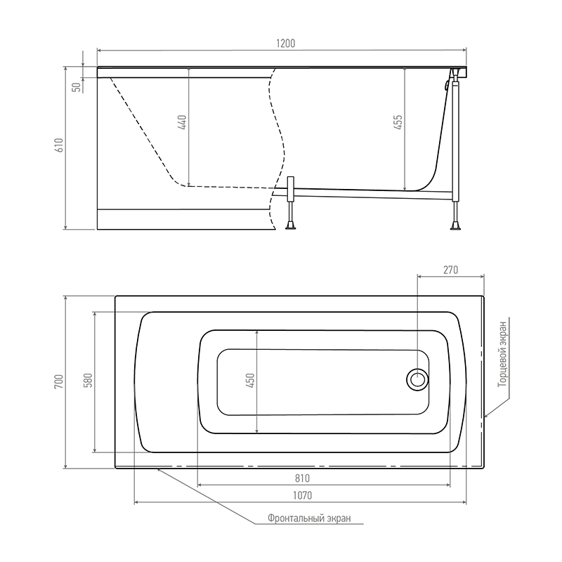 Каркас стальной с порошковой покраской, регулируемые ножки, крепление к стене, поставляется в комплекте с ванной и крепежом