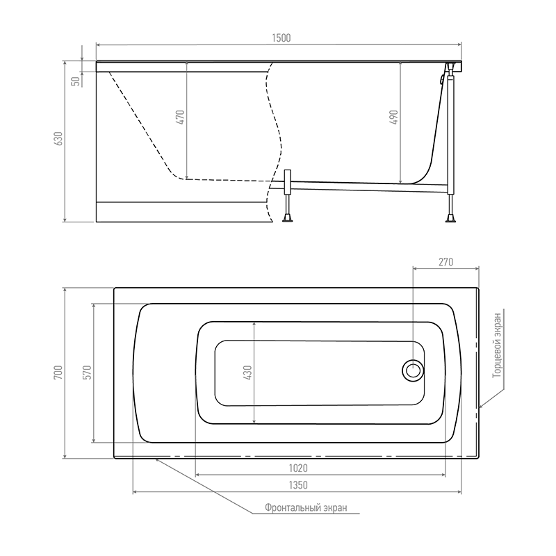 Каркас стальной с порошковой покраской, регулируемые ножки, крепление к стене, поставляется в комплекте с ванной и крепежом