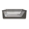 Лаконичная ванна, которая выглядит особенно стильно и привлекательно благодаря стеклянной стенке. Такое решение не только делает ее дизайн более запоминающимся и оригинальным, но и полностью избавляет внешний облик ванны от громоздкости. При этом стоит отметить и функциональность ванны - при всей внешней красоте и эстетике она превосходно подходит для активного ежедневного использования.