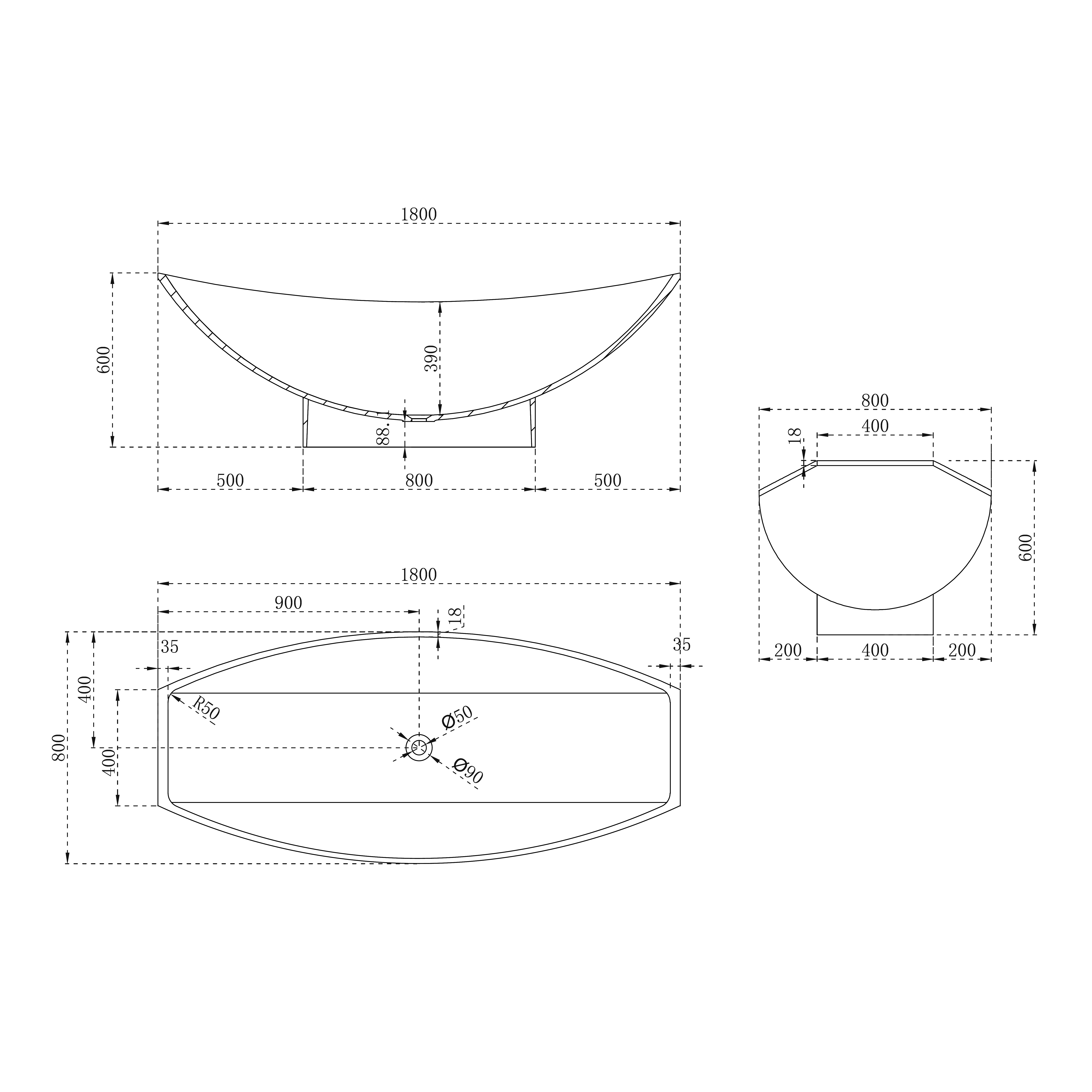 Ванна из искусственного камня ABBER Stein AS9610 белая матовая 180*80