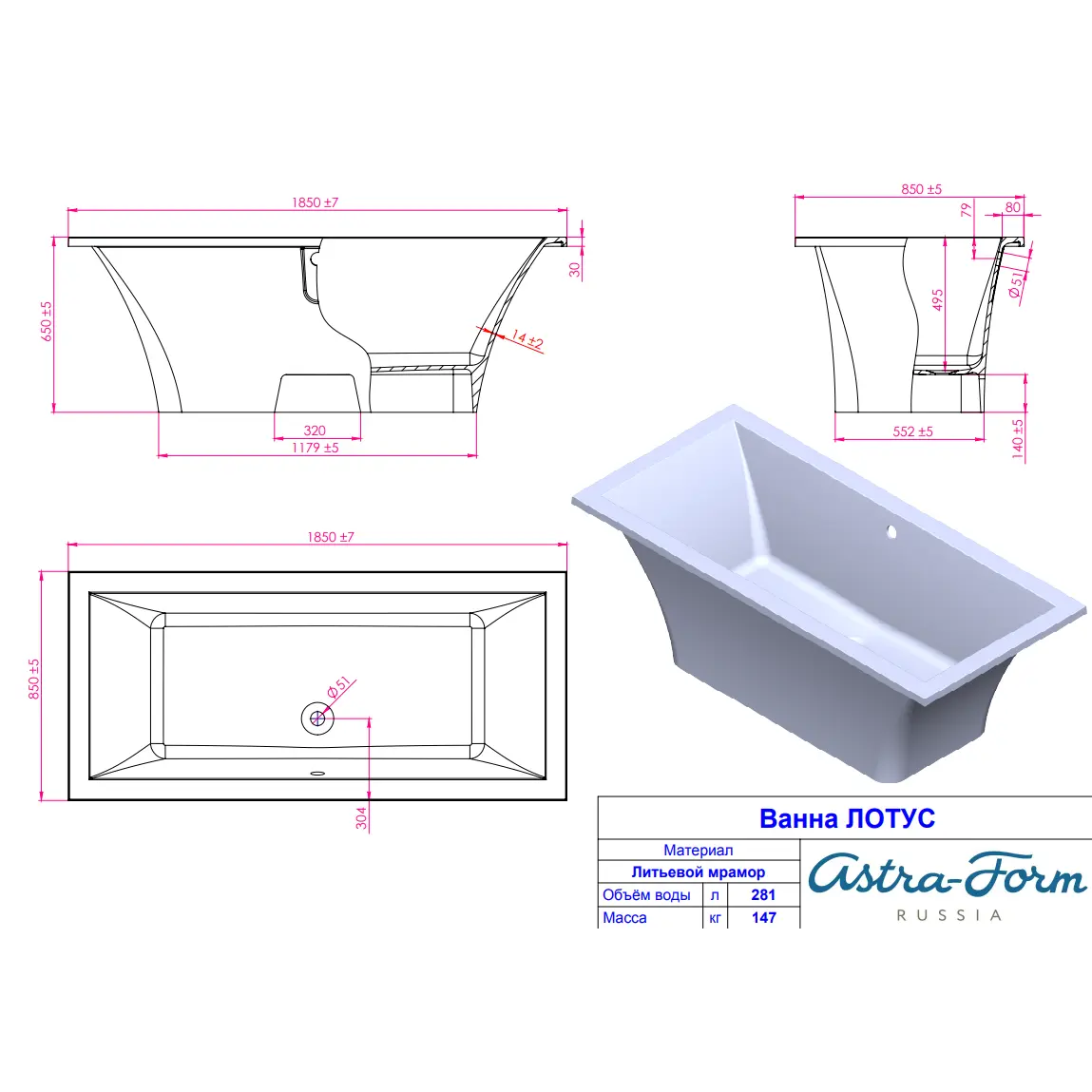 Цена указана за ванну (цвет белый глянцевый).