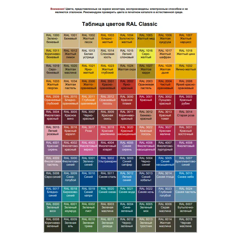 - Индивидуальный подбор цвета по системе RAL, NCS (+30% к стоимости белого изделия).