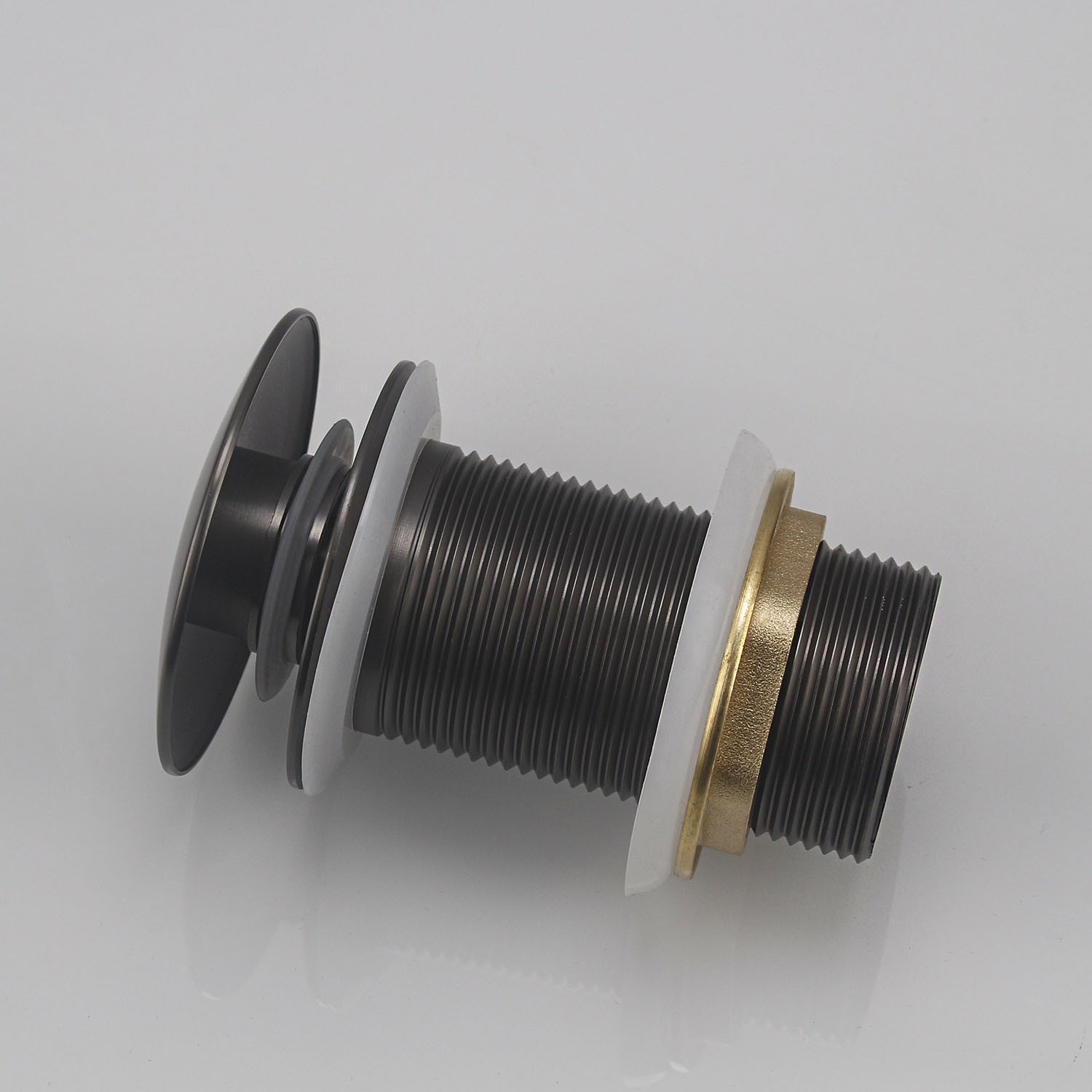 Донный клапан без переливаЗаглушка для сливного отверстия на дне раковины, умывальника или ванны. Это приспособление позволяет автоматизировать процесс удержания и слива воды и сделать его более удобным. Аккуратная металлическая крышка изделия выглядит более эстетично, чем отверстие в раковине.