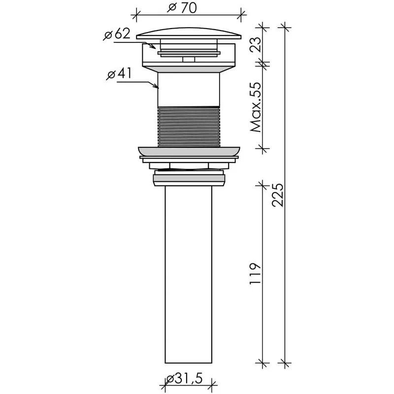 Донный клапан без перелива с керамической накладкой с системой "Click-Clack"