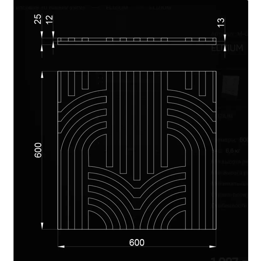Размеры:600x600x25 мм