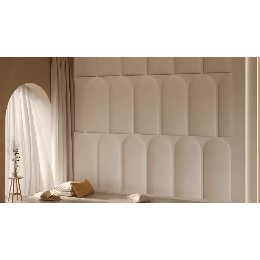 Конструктор PASSAGE объединяет в себе элегантность и функциональность. Панели, выполненные в трех вариантах — с ровной, вогнутой и арочной поверхностью, легко адаптируются к любому интерьеру, привнося в него нотки утонченности и шарма. Каждый элемент становится не просто частью стены, а настоящей архитектурной деталью, создающей выразительный ритм и динамику в пространстве. Стремясь к гармонии, PASSAGE прекрасно сочетается с другими нашими коллекциями, в том числе с MINIWOODS, открывая безграничные возможности для творчества. Используйте разную конфигурацию и раскладку панелей, комбинируя их по своему желанию, и создавайте оригинальные инсталляции, отражающие ваш уникальный стиль и настроение. Игра света и тени за счет арочных форм и добавления осветительных приборов привносит в помещение глубину и атмосферу уюта.