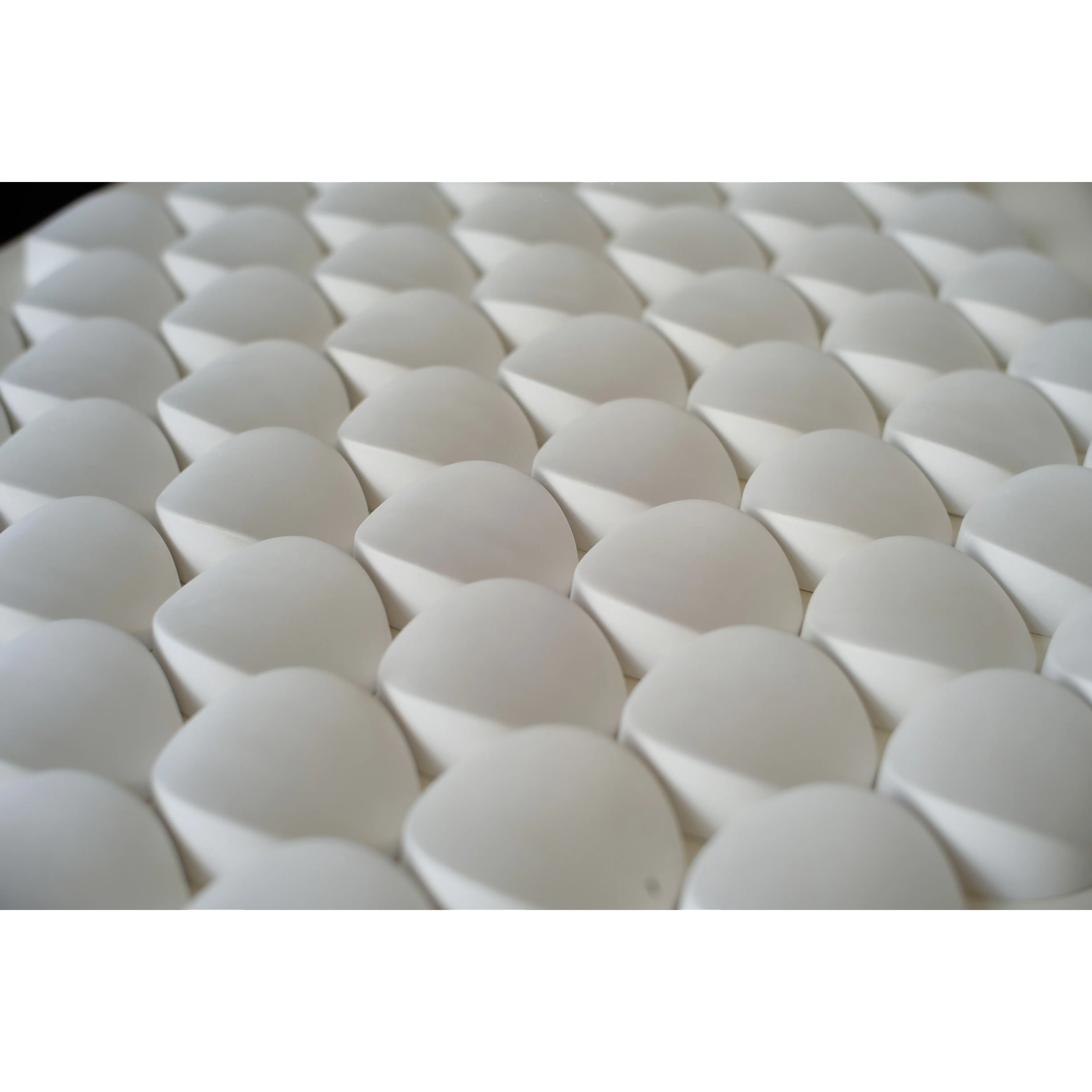 Круглый, но ассиметричный элемент ONIKS ассоциируется с камешками, над огранкой которых поработала сама природа. Когда каждый элемент повернут в случайную сторону, на стене появляется приятный, естественный хаос. Вся линейка ELEMENTARY рассчитана на монтаж без затирки швов. Такой подход значительно ускоряет процедуру инсталляции, делает ее дешевой и чистой (без пыли). Теперь любой человек, без помощи специалистов, сможет самостоятельно сделать инсталляцию. Поскольку швы не затираются, можно выполнить окраску до монтажа, чтобы создать эффект плавного перехода цвета или мозайки.