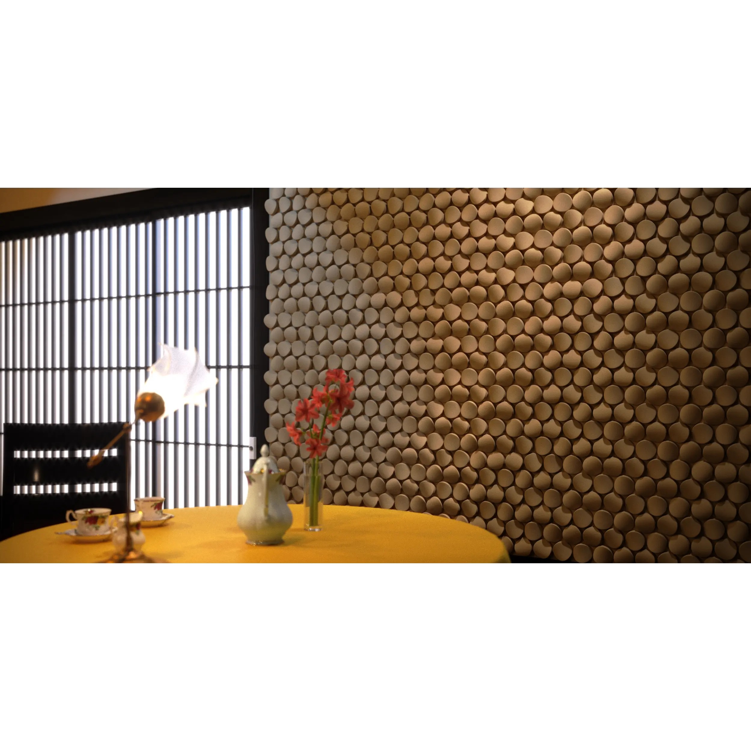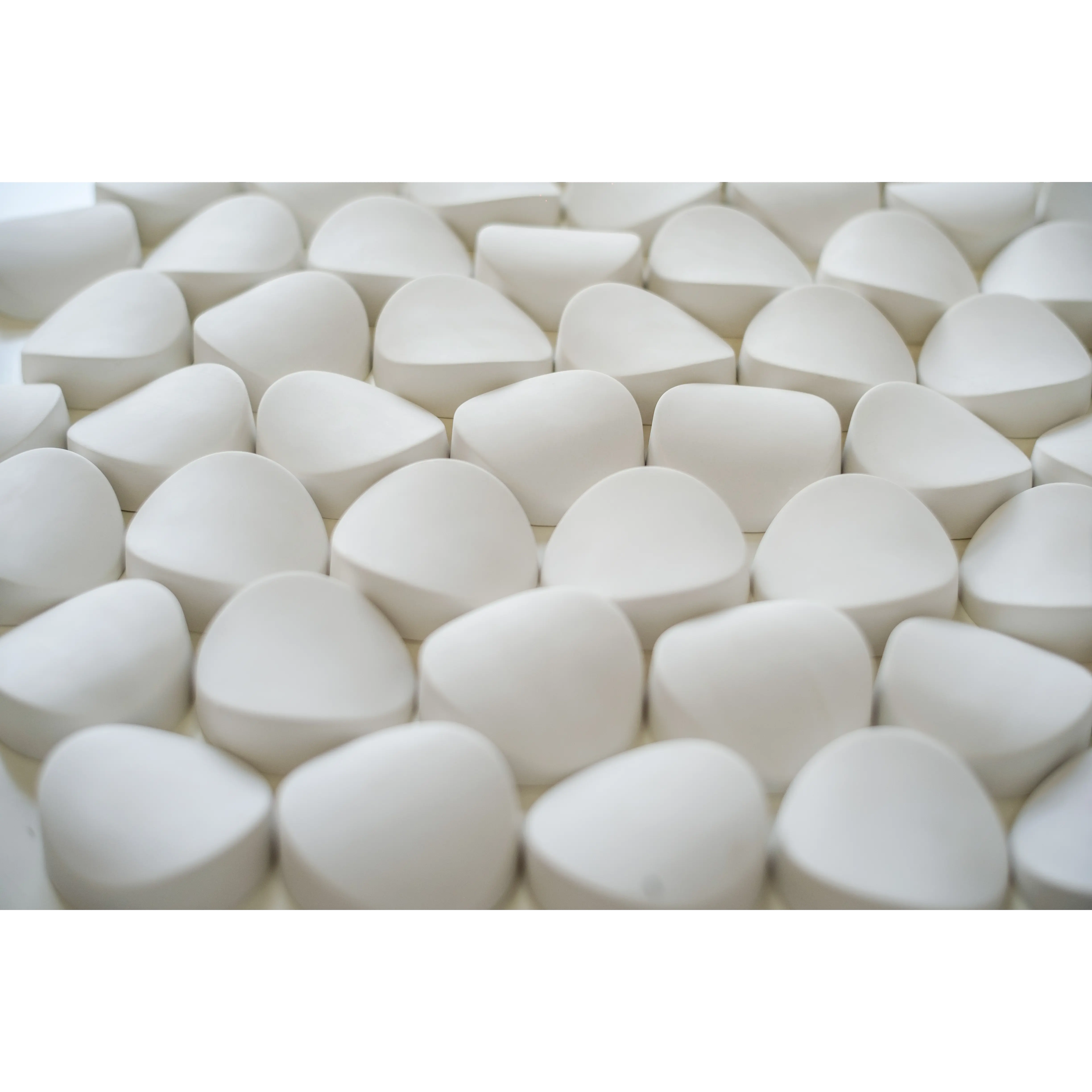 Круглый, но ассиметричный элемент ONIKS ассоциируется с камешками, над огранкой которых поработала сама природа. Когда каждый элемент повернут в случайную сторону, на стене появляется приятный, естественный хаос. Вся линейка ELEMENTARY рассчитана на монтаж без затирки швов. Такой подход значительно ускоряет процедуру инсталляции, делает ее дешевой и чистой (без пыли). Теперь любой человек, без помощи специалистов, сможет самостоятельно сделать инсталляцию. Поскольку швы не затираются, можно выполнить окраску до монтажа, чтобы создать эффект плавного перехода цвета или мозайки.