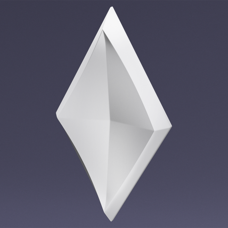 Элементы коллекции Rombus выполнены в виде равностороннего ромба с четко выраженным углублением в центре. Такой дизайн безупречно смотрится в интерьерах с богатой историей и дорогими предметами декора, он гармонично их дополняет, не уступая при этом пальму первенства. Для создания изысканных инсталляций не нужно тратить много времени и усилий: четко выверенная геометрия гипсовых панелей и многоступенчатый контроль качества гарантируют, что все элементы идеально подходят друг другу. Также отделочный материал отличается безопасным экологичным составом и негорючестью. В зависимости от дизайнерской концепции и выбранного стилевого решения 3D-панели можно использовать белыми или окрашивать в любой цвет.