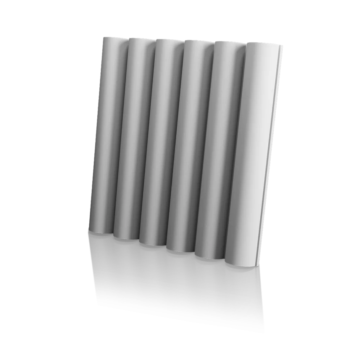 Гипсовые панели TUBE способны придать объем и аристократическое благородство любому интерьеру. Крупный рельеф, достигающий в высоту 58 мм, эффектно смотрится в изголовье кровати, при отделке перегородок для зонирования помещений, в офисах, залах ресторанов и других пространствах. Коллекция украсит интерьеры, оформленные в неоклассике, экостиле, хай-теке, фьюжн и других стилях. Простой и при этом нетривиальный дизайн позволяет не ограничивать фантазию при отделке, имитируя металлические трубы, бамбук, тканевую обивку или другие материалы. Представленные 3D-панели можно окрашивать в любые цвета, они не горючи, экологичны, отличаются идеальной геометрией.