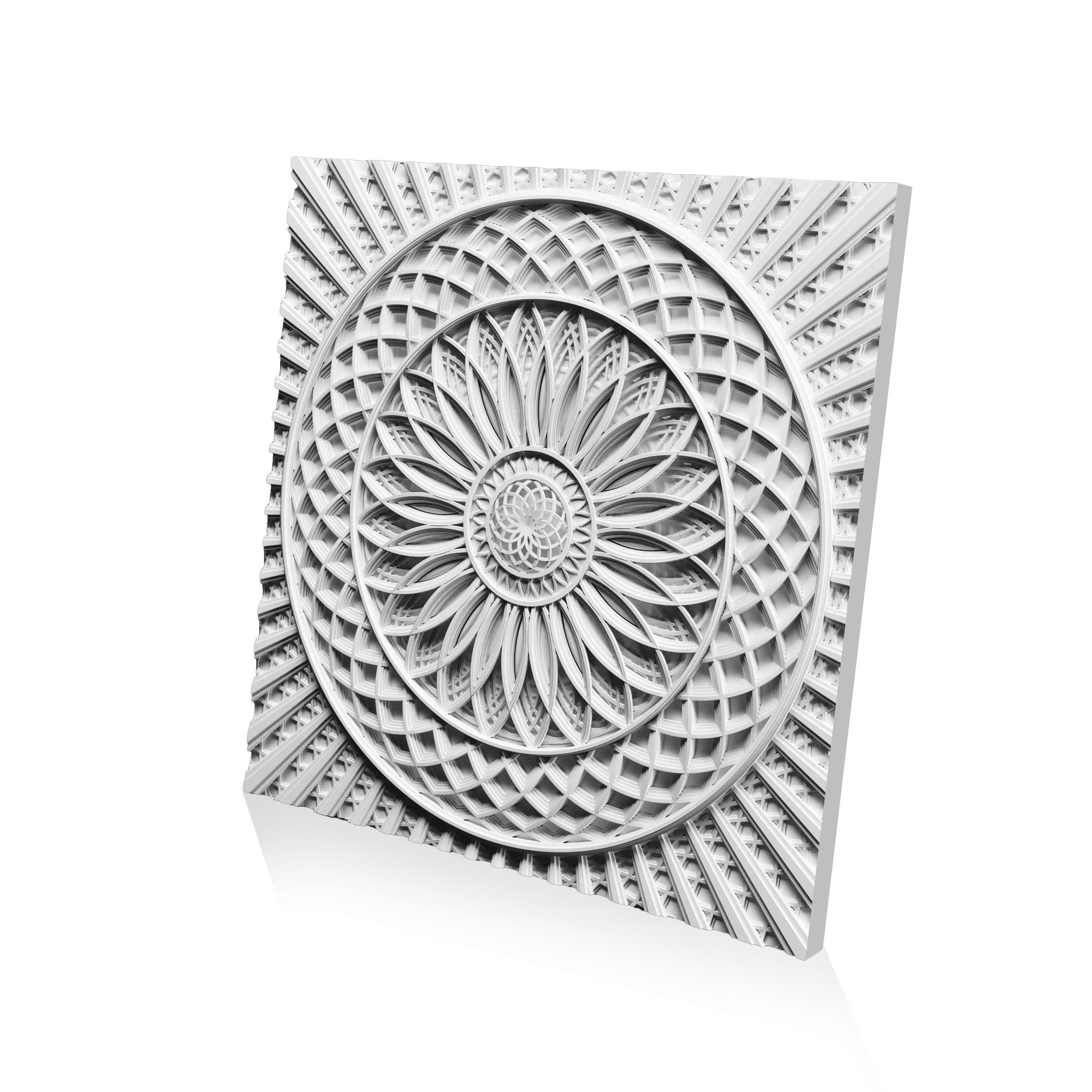 Панно SHANGRILA из гипсовых 3D-панелей станет наглядным воплощением гармонии и совершенства в Вашем интерьере, оно будет завораживать и притягивать взгляд. Изысканный, тщательно проработанный узор, напоминающий мандалу, создает ощущение бесконечности и единства с миром. Название SHANGRILA – это отсылка к мифической долине вечной молодости и мудрости. Панно способно превратить любое пространство в уголок спокойствия и медитации. Шестнадцать панелей из экологичного гипса размером 600х600 мм собираются в единое полотно 2400х2400 мм.
