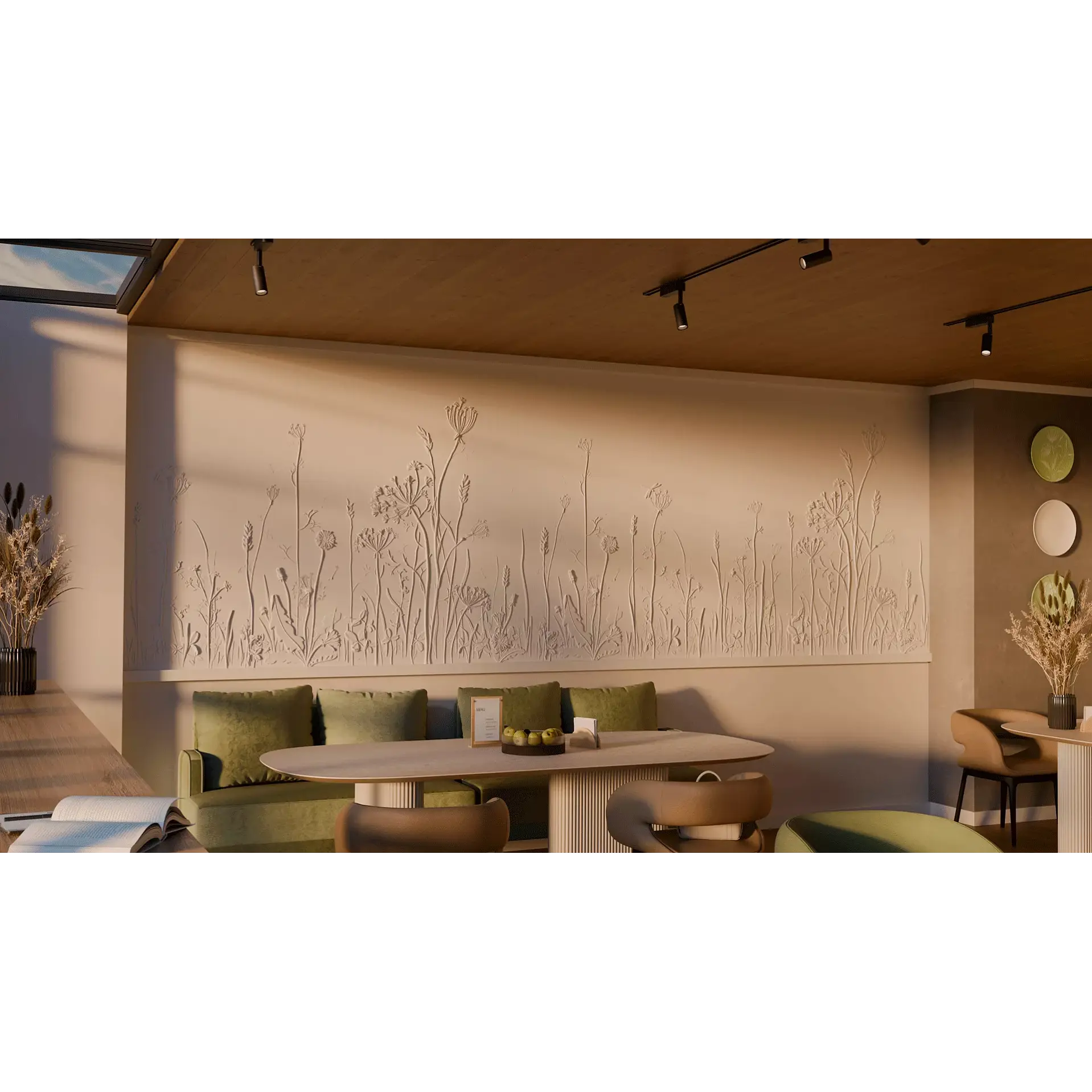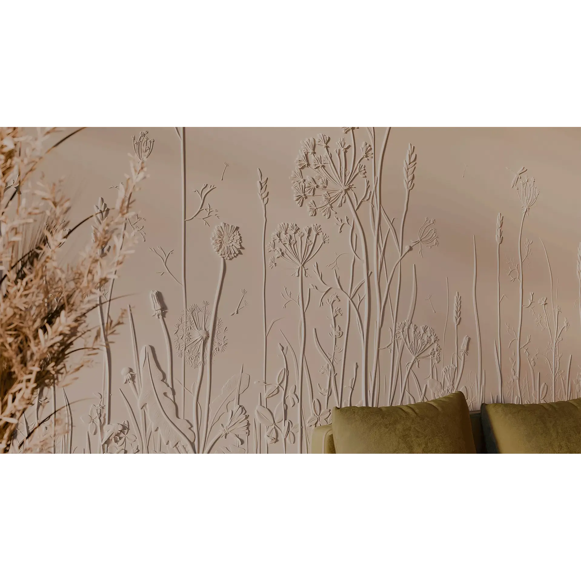 Завораживающее панно с растительным рисунком Provance способно привнести нежность природы в любой интерьер. Инсталляция размером 1800х3000 мм – это словно кадр из тайного сада или страницы редчайших фолиантов, где художественно воспроизведены изящные стебли, тонкие листья, пушистые соцветия и нежные цветы дикорастущих трав. Уникальный дизайн панелей превращает эту композицию в живую симфонию ботанических форм с тончайшей детализацией и природной гармонией.