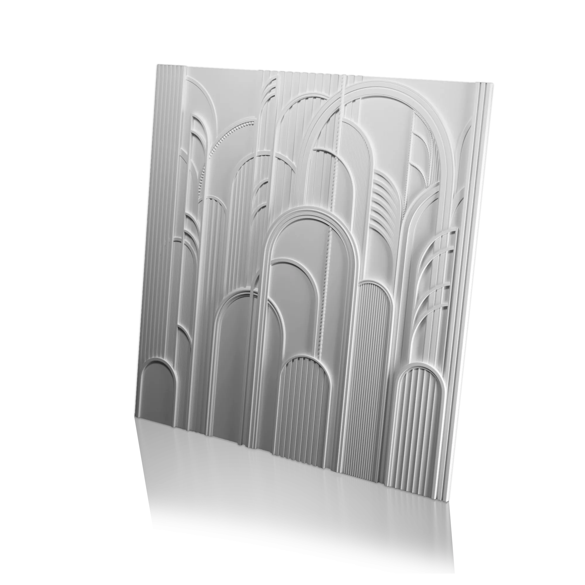 Декоративное панно монтируется из отдельных элементов в соответствии с раскладкой. Швы легко декорируются, что делает композицию целостной. Дизайн городской архитектуры таит в себе особый шарм, позволяя этому панно стать ярким акцентом интерьера. Панели поставляются в белом цвете, чтобы в зависимости от дизайнерского видения их можно было окрасить в один тон или прорисовать отдельные детали разными красками. При производстве используется российский гипс без опасных примесей, обеспечивающий экологичность и пожаростойкость изделий.
