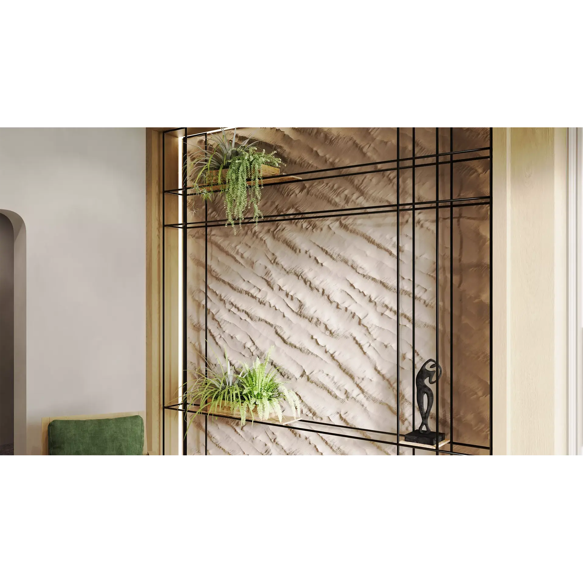 Декор SABBIA покоряет своей универсальностью: его плавные линии уместны как в минималистичных пространствах, так и в интерьерных решениях, вдохновленных экотематикой или неоклассицизмом. Гипсовые панели можно окрасить в любой цвет, но ярче всего они демонстрируют свой характер в пастельных бежевых и золотистых оттенках.