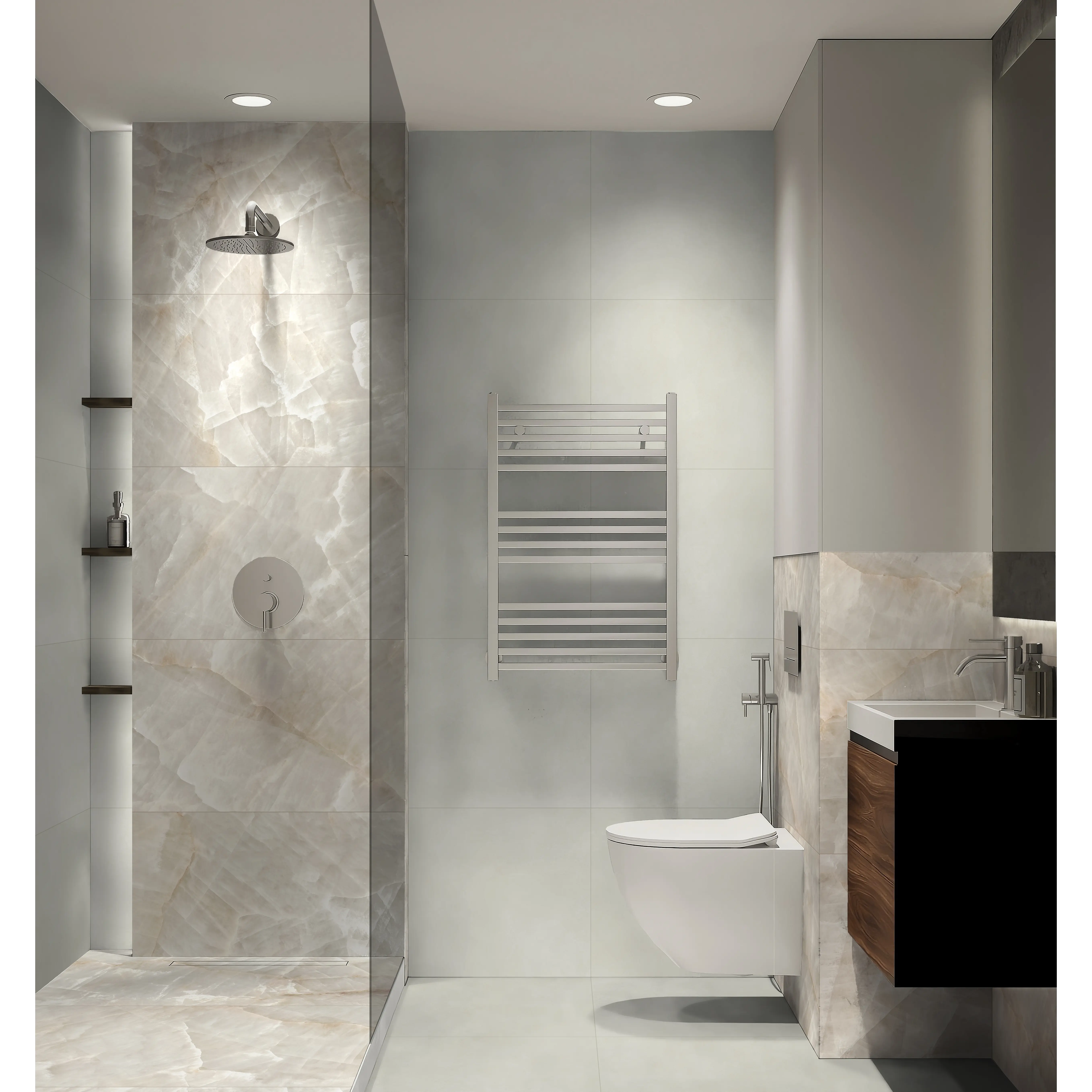 Коллекция Мечта отражает актуальную эстетику современного бетона, приближенного к микроцементу — с мягкой, однородной текстурой и деликатной глубиной. Поверхность отличается спокойной облачностью и равномерным тоном без выраженной графики, создавая чистую архитектурную основу для интерьера. Формат 50×100 см подчёркивает цельность покрытия и позволяет создавать минималистичные пространства с эффектом непрерывной поверхности.