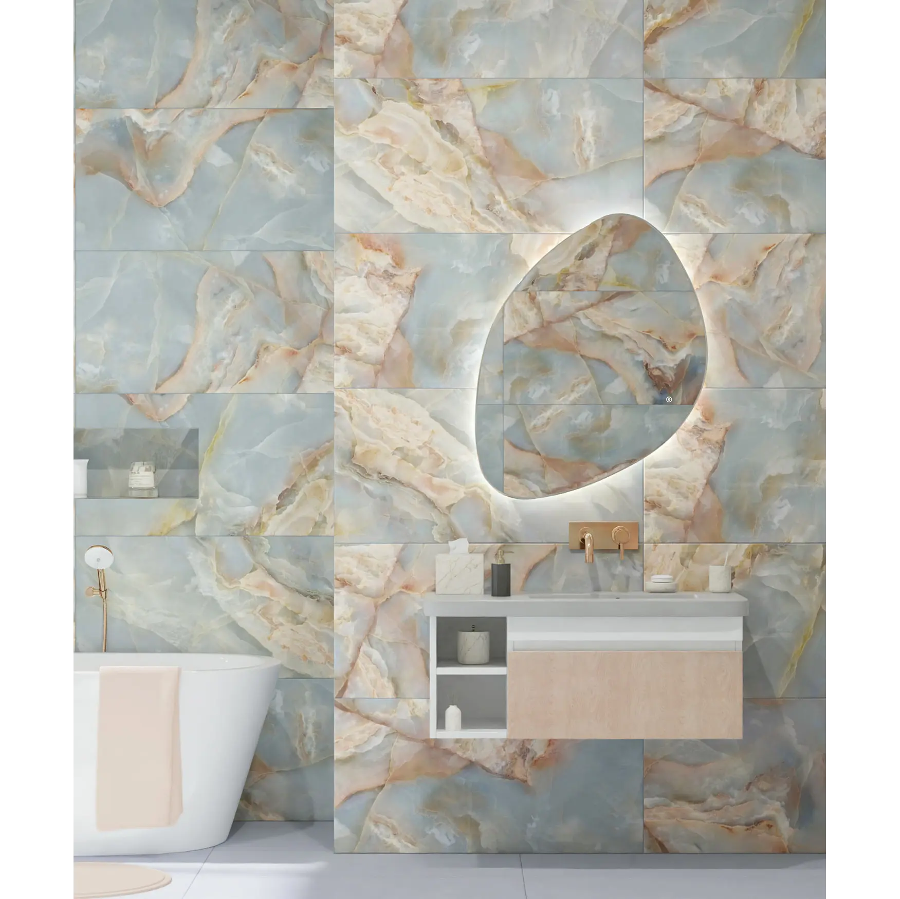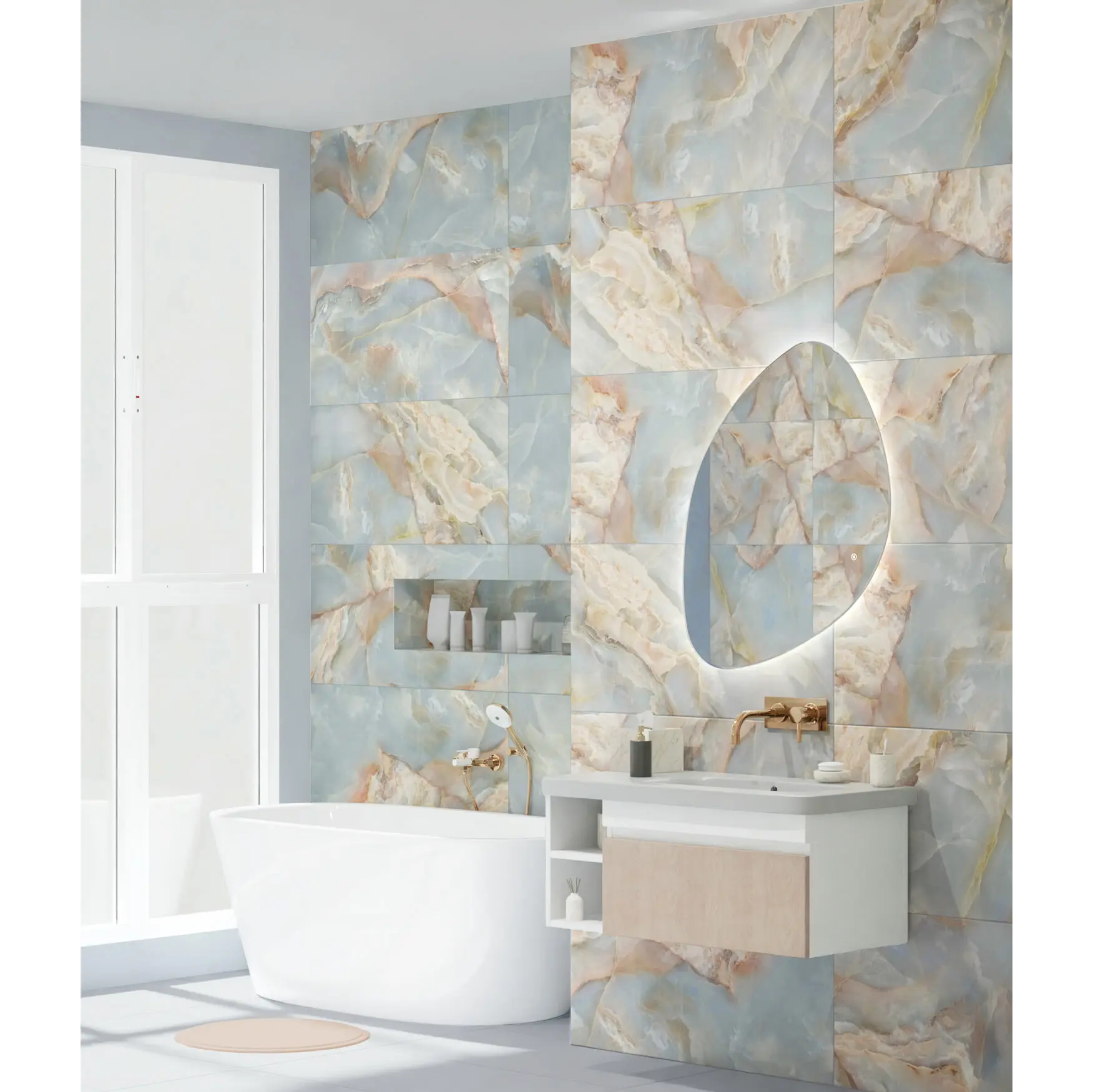 Керамогранит Global Tile «Амбра» голубой – гармония цвета и глубины, вдохновленная природной красотой камня. В основе коллекции лежит натуральный оникс, известный своей прозрачной, слоистой структурой и плавными переходами оттенков. Коллекция выполнена в формате 50×100 см и объединяет три выразительных эффекта: Карвинг – мягкий рельеф, добавляющий объем и тактильность поверхности; Блестящий «Сахар» – мерцающий эффект, подчеркивающий глубину рисунка и игру света; R11 – антискользящее покрытие для безопасного использования в любых помещениях. «Амбра» голубая идеально подходит для создания премиальных интерьеров, где важны эффектная текстура и выразительный цвет. Эта коллекция станет акцентом в гостиных, холлах, ванных комнатах и общественных пространствах, сочетая эстетическую красоту с высокой практичностью керамогранита.