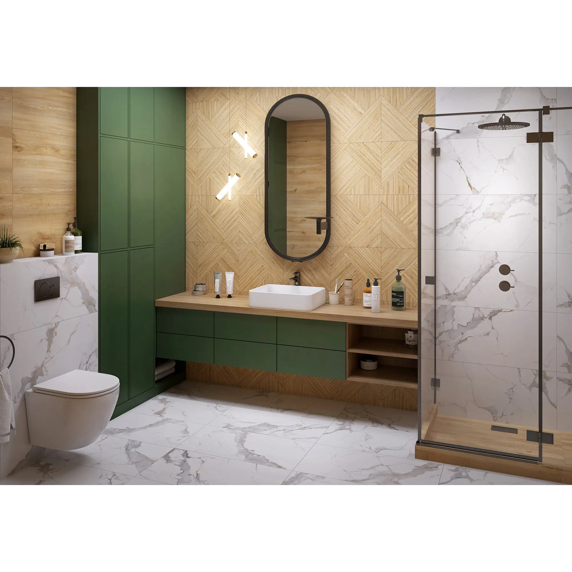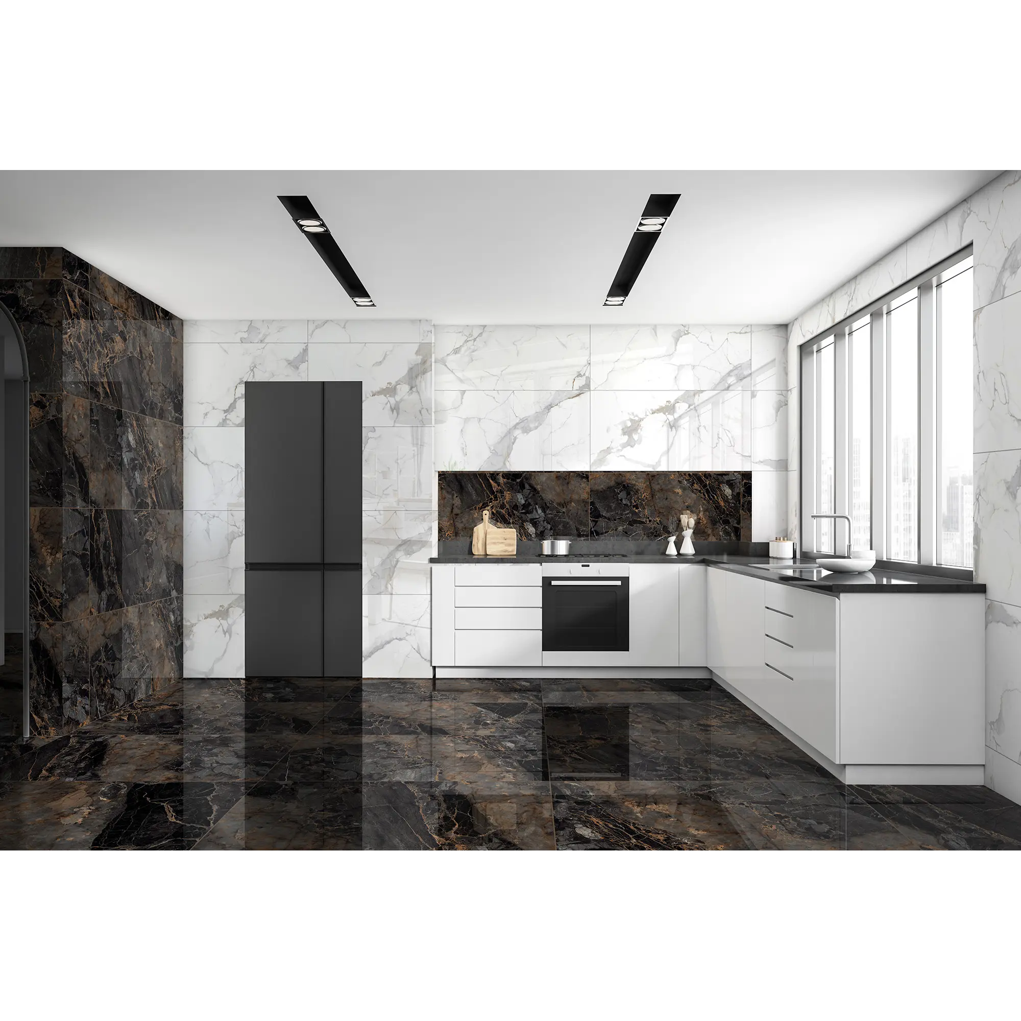 Коллекция керамогранита Calacatta Imperial – это сочетание изысканности и динамики, классики и современности. Плиты имитируют одну из разновидностей белого мрамора с характерным, узнаваемым рисунком. На белом с кремовым оттенком фоне протянулись серые и золотистые прожилки разной толщины. Несомненное преимущество керамогранита Calacatta Imperial – теплая цветовая гамма, которая значительно смягчает белый мрамор, избавляя его от холодной, стерильной чистоты. Темное золото прожилок добавляет рисунку живости, поэтому Calacatta Imperial дает возможность уделить больше внимания декору интерьера и вписать в него другие материалы, например, древесину в теплых, коричневых тонах и текстиль в близких оттенках. Спокойное очарование мрамора выглядит уместно везде, будь то небольшая ванная комната или театральный холл. Светлый фон помогает визуально расширить пространство и сделать его более освещенным.