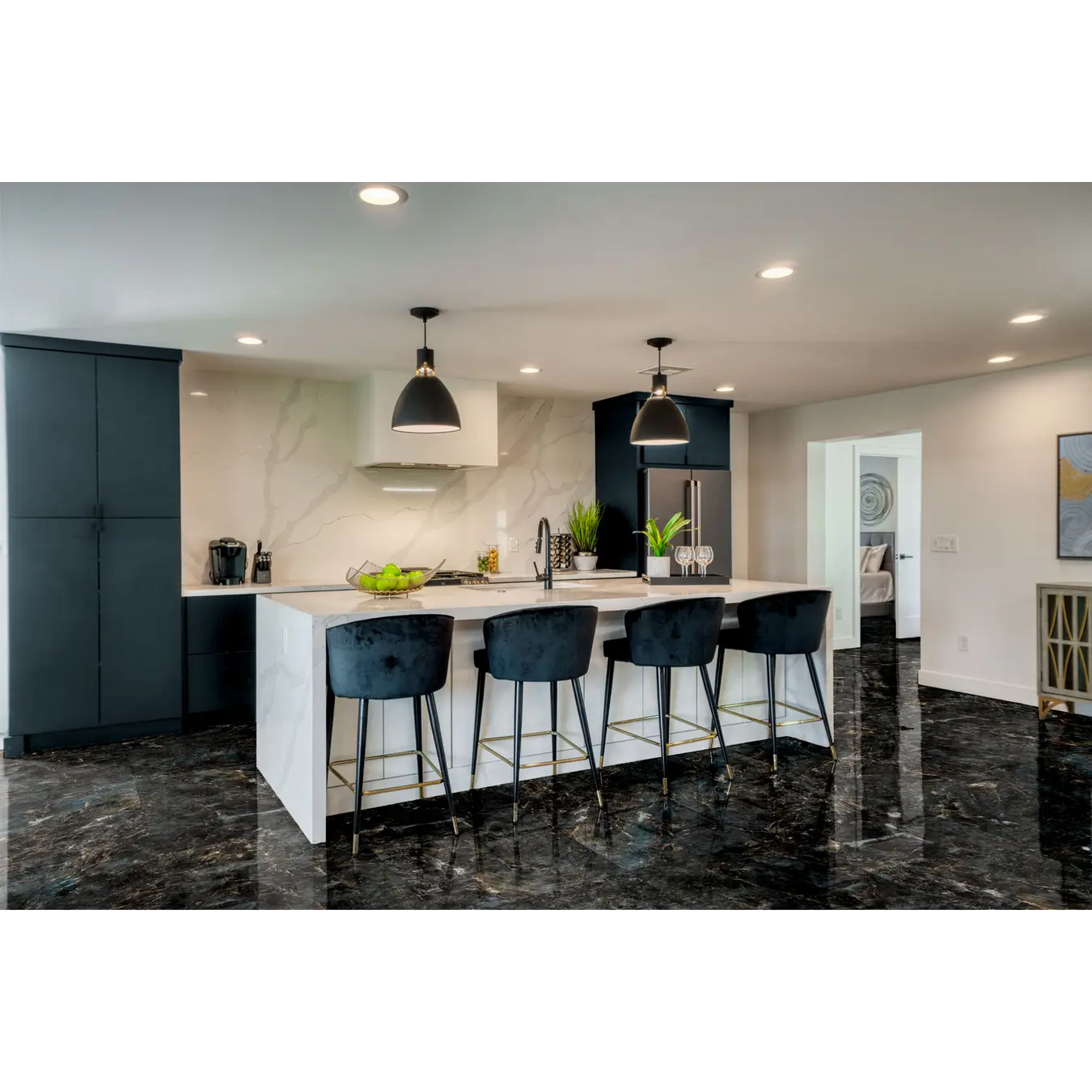 Темно-синий мрамор - это эффектный и роскошный материал, который придаст интерьеру элегантность и лоск. В уникальном глубоком оттенке Ergon Aqua можно увидеть волнующиеся морские волны, разбивающиеся о каменные скалы. Этот изысканный мрамор идеально подходит для использования в дизайне интерьера, создавая атмосферу спокойствия и роскоши в любом помещении. Керамогранит Ergon Aqua поражает неповторимым рисунком, характерным для натурального мрамора, с его богатой палитрой оттенков, трещинами и сетью золотистых прожилок. Поверхность отполирована особым методом - "суперполировкой", благодаря этому плита имеет более высокий показатель блеска и еще более глубокий насыщенный цвет. Этот материал привнесет в ваш интерьер особый шарм и элегантность, наполняя его утонченным и величественным обликом.