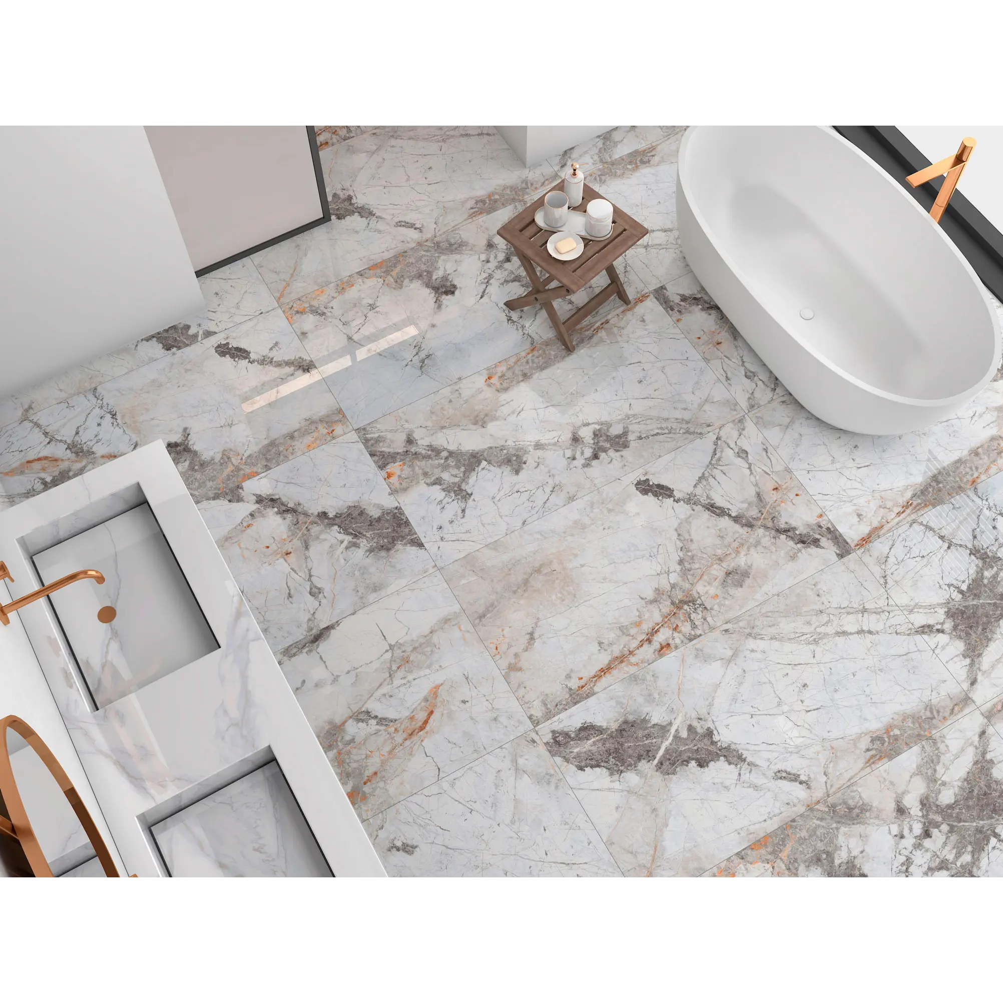 Коллекция Gabriel – это роскошная текстура мрамора с каменными венами, широкими серыми прожилками и трещинами. Керамогранит сразу привлекает к себе внимание необычным и ярким природным рисунком. Это идеальный вариант для создания акцента в интерьере. Крупный формат, полированная текстура и неповторяющиеся окна помогут создать элегантный и роскошный интерьер. Керамогранит Gabriel имеет два формата – 60х60, 60х120 и является ректификатом, что позволяет выкладывать плиту с минимальным размером швов.