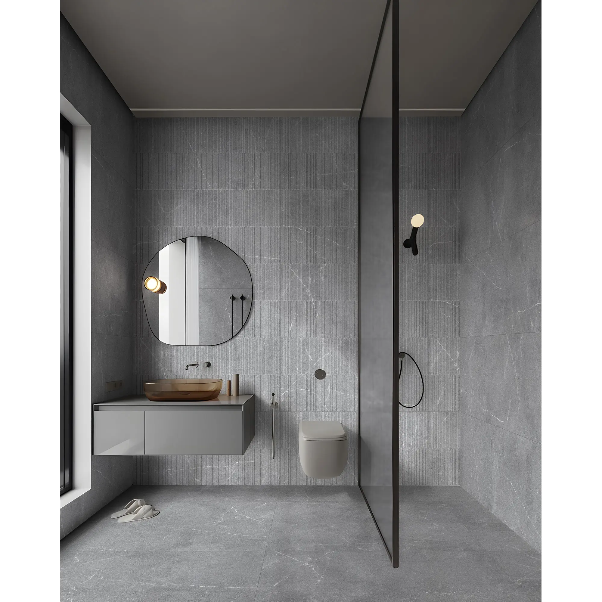 Керамогранит Geo – это гармоничное сочетание элегантности и современного дизайна. В коллекцию входит две позиции: базовая, которая станет прекрасным фоном для любых интерьеров, и плита с рельефной поверхностью в виде линий, обладающая структурой, способной акцентировать внимание и создавать визуальные акценты. Матовая поверхность не только придает плите особую надежность и прочность, но и создает неповторимую атмосферу уюта в любом пространстве. Белые прожилки керамогранита Geo привнесут в интерьер атмосферу спокойствия, идеально подходя как для жилых, так и для коммерческих помещений. Эти поверхности прекрасно гармонируют с различными стилями оформления, от минимализма до скандинавского дизайна, что делает их универсальным выбором для дизайнеров и домовладельцев.