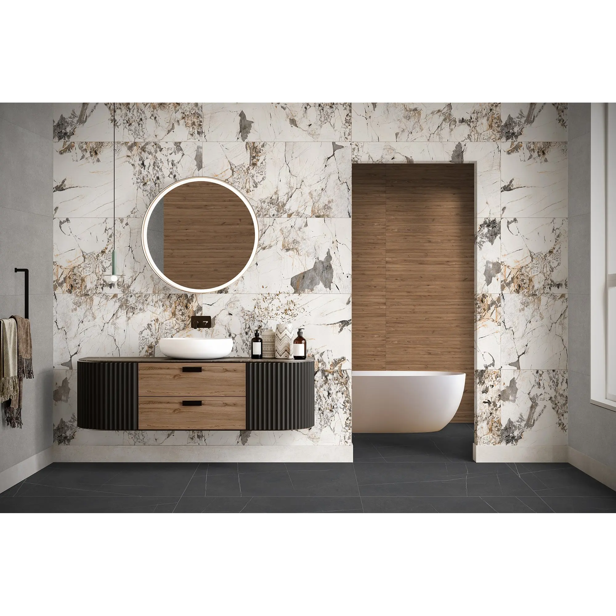 Коллекция керамогранита Laurent искусно имитирует яркий индивидуальный рисунок горных пород во всех их красе и разнообразии. Необыкновенная текстура камня уже давно полюбилась дизайнерам и стала неотъемлемой частью люксовых интерьеров. Эффектные матовые плиты выглядят по-настоящему ярко, завораживая удивительными линиями. Керамогранит Laurent прекрасно вписывается классические, а также великолепно смотрится в современных интерьерах. Это отличный вариант как для напольных, так и для настенных покрытий, стильный и не маркий.