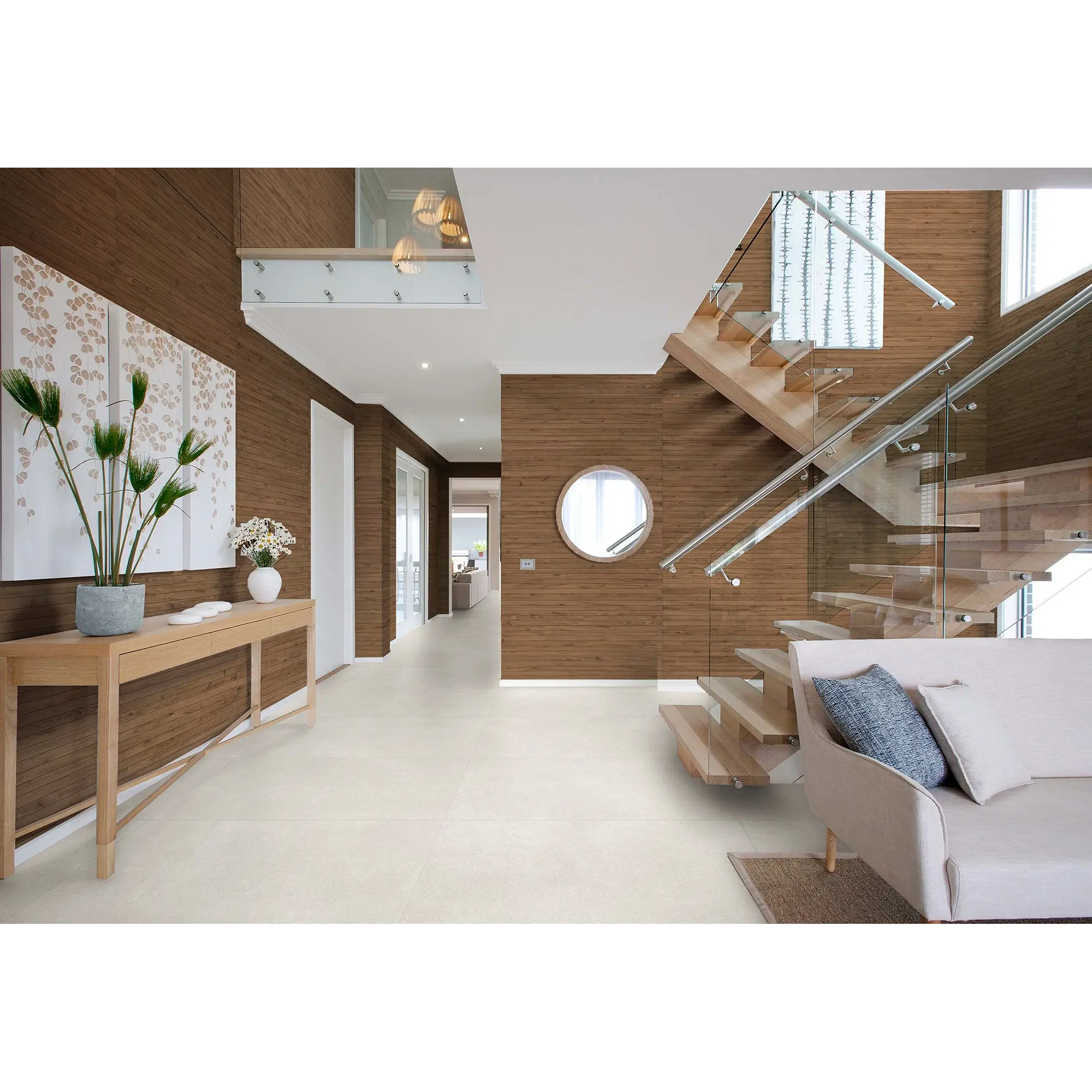 Коллекция керамогранита Harmony представлена в четырех оттенках: серо-бежевом, терракотовом и светло-бежевом и белом. Эффектная фактура «под бетон» идеально подходит для оформления пространств в трендовых стилях лофт, гранж и индастриал. Неоднородная текстура бетона выглядит эффектнее благодаря декору, дополненному рельефом в виде аккуратных полос. Плиты базовых цветов можно сочетать между собой или с более яркими контрастными материалами, а также комбинировать с текстурами под дерево или камень, чтобы создать оригинальный интерьер, наполненный личными эмоциями.
