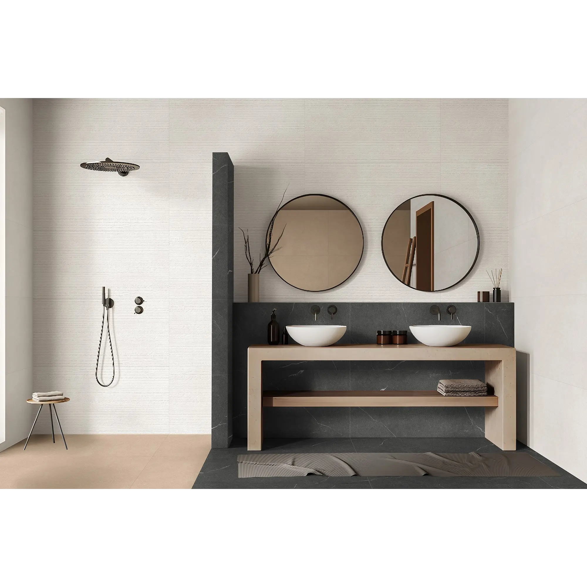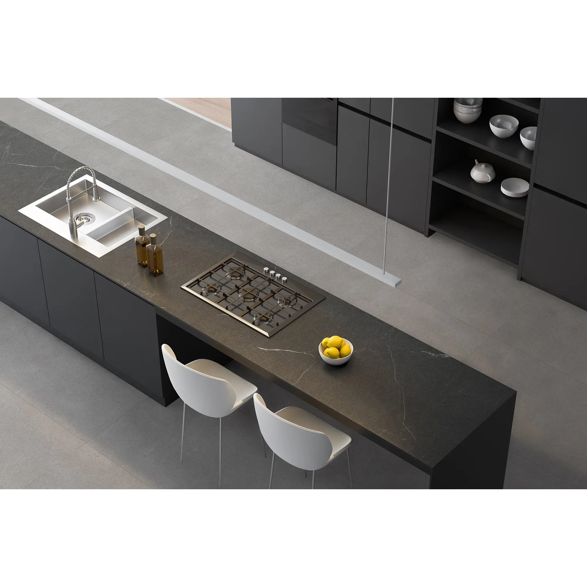 Коллекция Lakeside – это керамогранит с трендовым рисунком, который имитирует черный камень с неброскими, но добавляющими эффектности, белыми прожилками. Неоднородная текстура матовых плит смотрится интереснее благодаря декору, дополненному аккуратным рельефом в виде полос. Коллекция идеально гармонирует с деревом, металлом, позолотой, придает пространству элегантность и лоск, что позволяет создавать по-настоящему уникальные интерьеры.