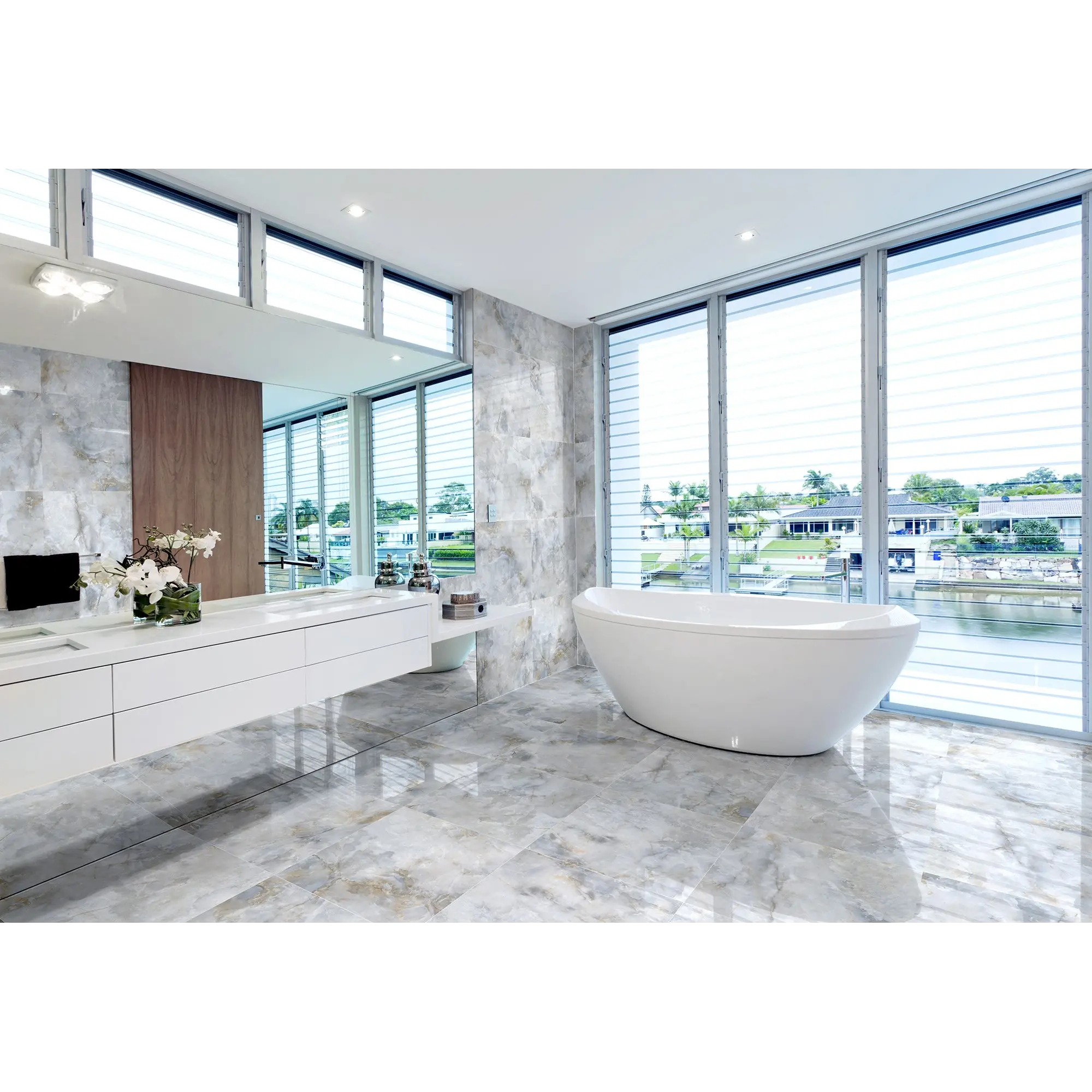В мире существует множество разновидностей оникса, и у каждой имеется свой яркий индивидуальный рисунок, который формирует определенную атмосферу. Коллекция Orinda, искусно имитирующая природный оникс, создана для стильного и элегантного интерьера. Керамогранит имеет неоднородную текстуру с тонкими трещинами и разводами. Нежный серо-голубой оттенок плиты привлекает внимание и отлично сочетается с деревом, металлом и камнем. Полированная поверхность керамогранита прекрасно отражает свет, усиливая переливы уникального рисунка. Нейтральная расцветка и мягкие блики добавляют интерьеру легкости и воздушности. Коллекция Orinda отлично дополнит интерьер как в неоклассическом, так и в современном стиле.