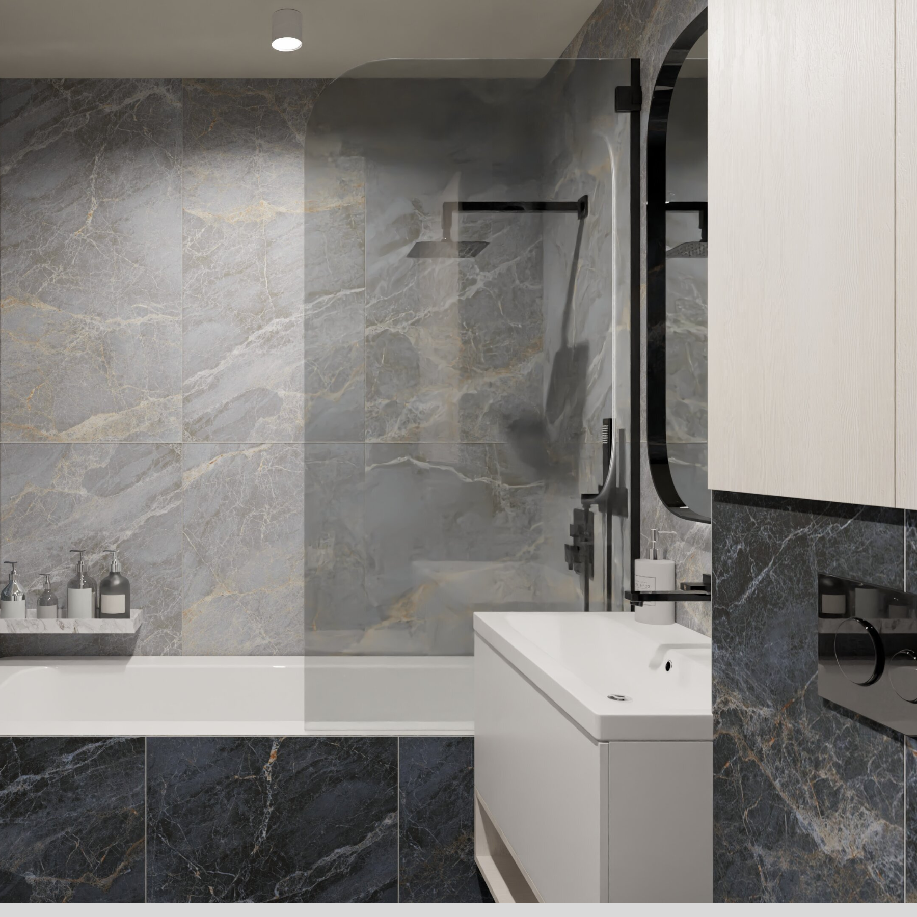 Коллекция Spanito – это ода гармонии контрастов, воплощенная в керамограните. Два оттенка, глубокий синий и теплый бежевый, образуют завораживающий дуэт, способный преобразить любое пространство. Синий, словно бескрайний океан, дарит ощущение спокойствия и глубины. Бежевый, в свою очередь, напоминает о мягком песке под лучами заходящего солнца, наполняя помещение уютом и теплом. Однако истинным сокровищем Spanito является не только цветовая палитра, но и изысканный рисунок. Множество тонких прожилок, пронизывающих поверхность керамогранита, словно нити золота, вплетены в канву каждого элемента. Эти золотые акценты придают коллекции особую роскошь и элегантность, создавая неповторимый визуальный эффект.