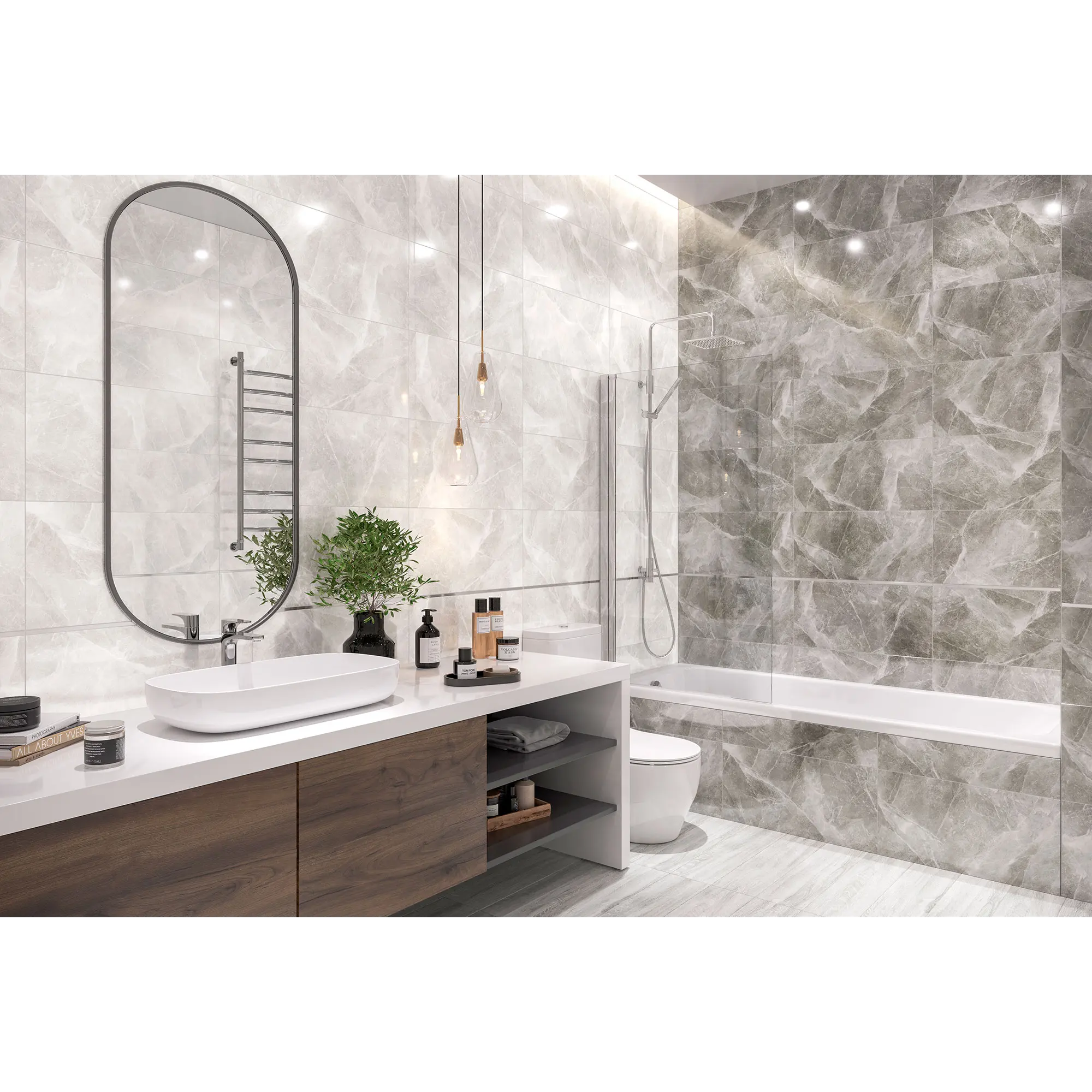Коллекция Futuris – это благородное сочетание мрамора двух оттенков серого. Монохромный фон плит оживляет сеть белых туманных прожилок. Глянцевая поверхность подчеркивает динамичный рисунок, отражая свет и делая помещение визуально просторнее. Темно-серая плита будет идеальным решением для акцентной стены или для зонирования части пространства.