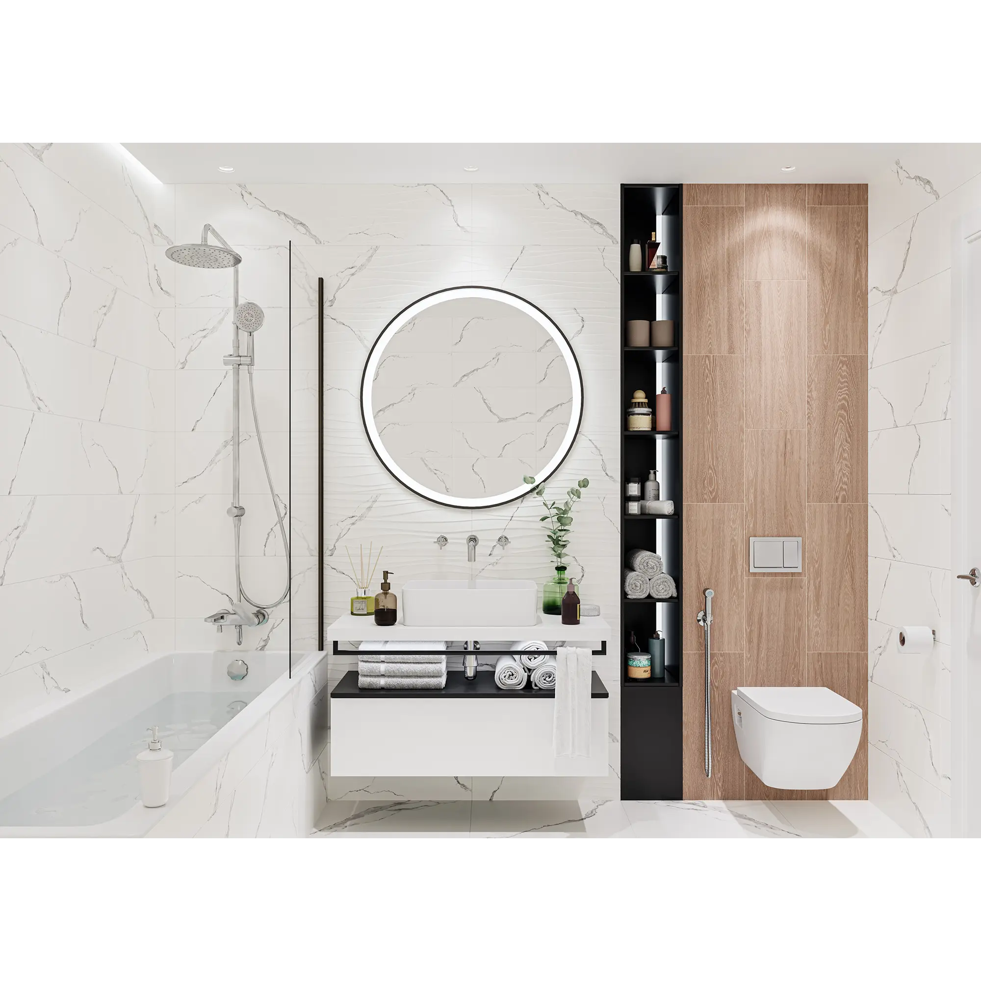 Коллекция Arto – это сочетание натуральных оттенков каррарского мрамора и уютной текстуры дерева. Коллекция создаст светлый и сбалансированный интерьер, наполненный благородством и спокойствием натуральных материалов. Белый мрамор с тонкими ярко-выраженными прожилками идеально гармонируют с фактурой дуба, а для акцентных зон в коллекции предусмотрен декор с рельефом. Лёгкость и элегантность коллекции раскрывается в ванных комнатах, выполненных в неоклассическом стиле и eco-минимализме.
