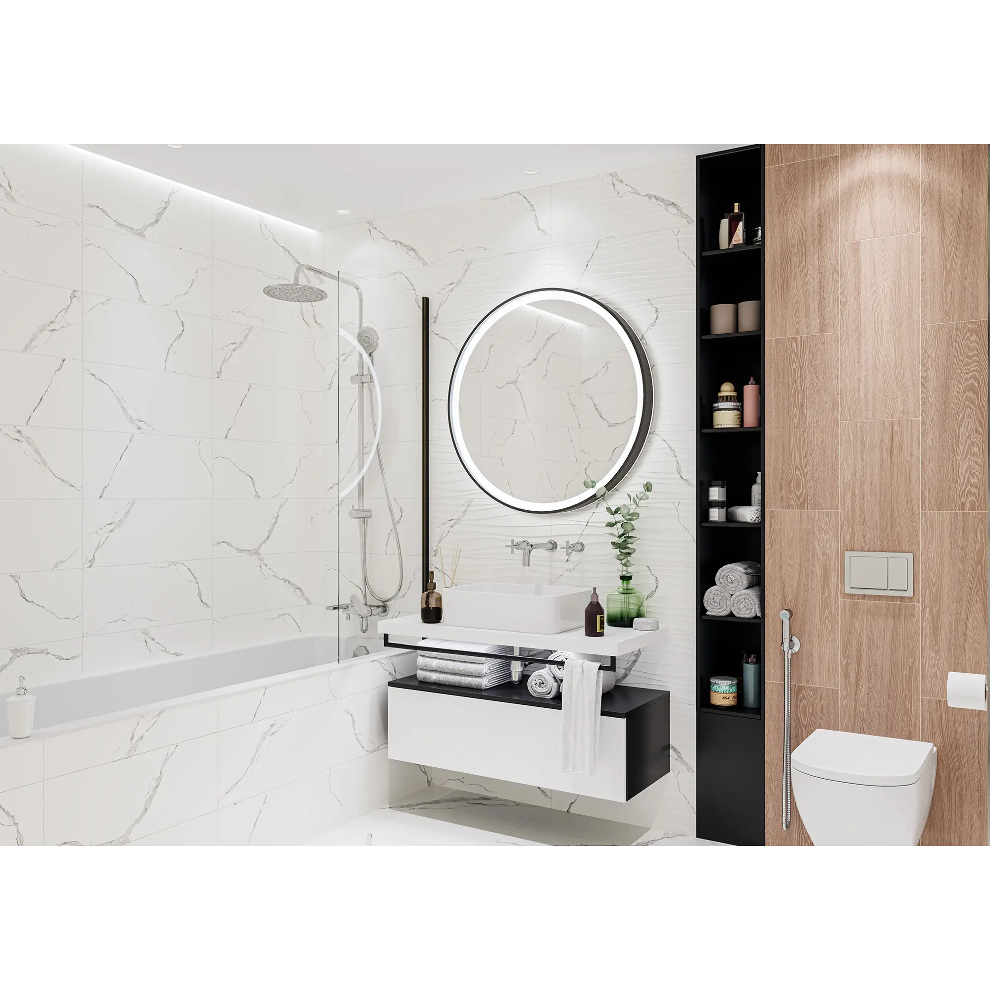 Коллекция Arto – это сочетание натуральных оттенков каррарского мрамора и уютной текстуры дерева. Коллекция создаст светлый и сбалансированный интерьер, наполненный благородством и спокойствием натуральных материалов. Белый мрамор с тонкими ярко-выраженными прожилками идеально гармонируют с фактурой дуба, а для акцентных зон в коллекции предусмотрен декор с рельефом. Лёгкость и элегантность коллекции раскрывается в ванных комнатах, выполненных в неоклассическом стиле и eco-минимализме.