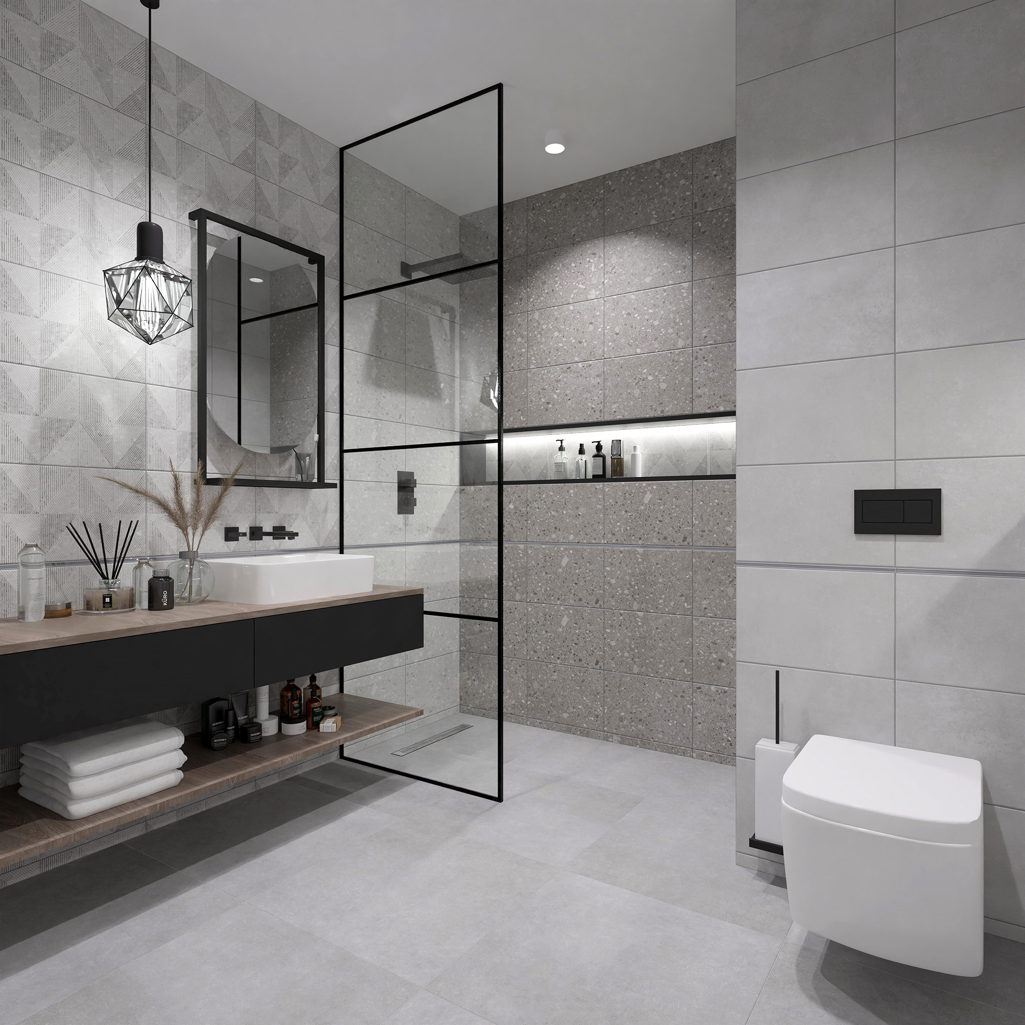 Стильная коллекция керамогранита Remix – это идеальный вариант для дизайна в урбанистических стилях, таких как лофт или хай-тек, с их любовью к пространству, свету и функциональности. Сдержанные оттенки чистого серого тона, минималистичные текстуры дерева, бетона и терраццо создают эффектную базу под яркие акценты городского дома. В коллекцию включены базовые плиты, декор с фактурной елочкой и темно серый бордюр, который поможет выделить отдельные зоны. Плиты с разным рисунком гармонично сочетаются между собой, позволяя разнообразить интерьер и в то же время сохранить его концептуальность.